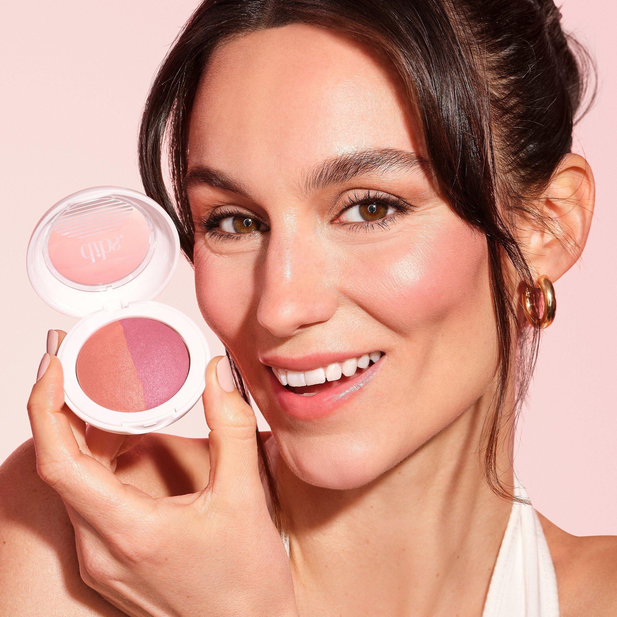 DIBS Beauty's Duet Baked Blush is a talc-free baked blush, topper, and highlighter with two versatile shades for a blurring rolling glow.
