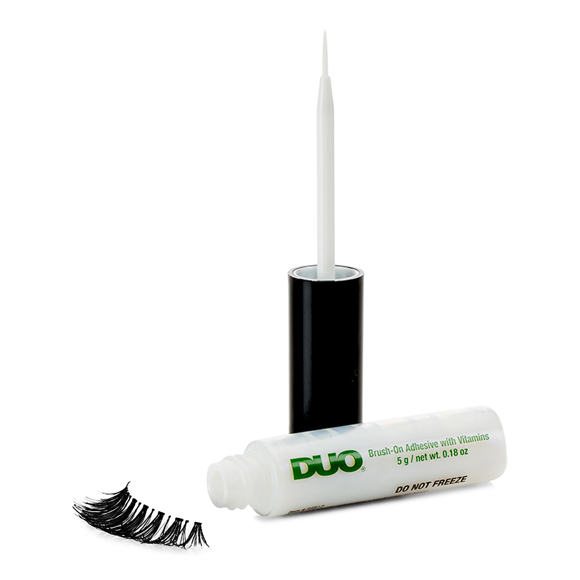 DUO Brush-On Adhesive has an ultra-thin brush. Precise, quick application of strip and individual lashes. Latex-free formula.