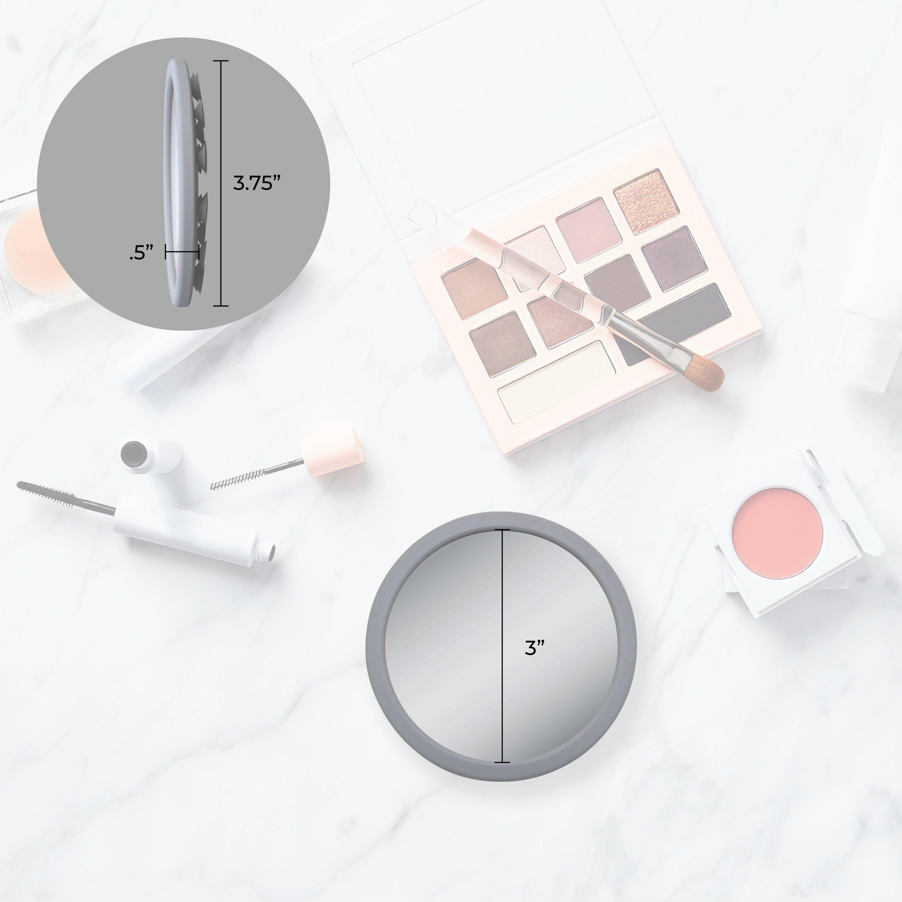 Portable 12-times magnification glass face mirror. Suction cups mount to almost all smooth services like glass and tile.