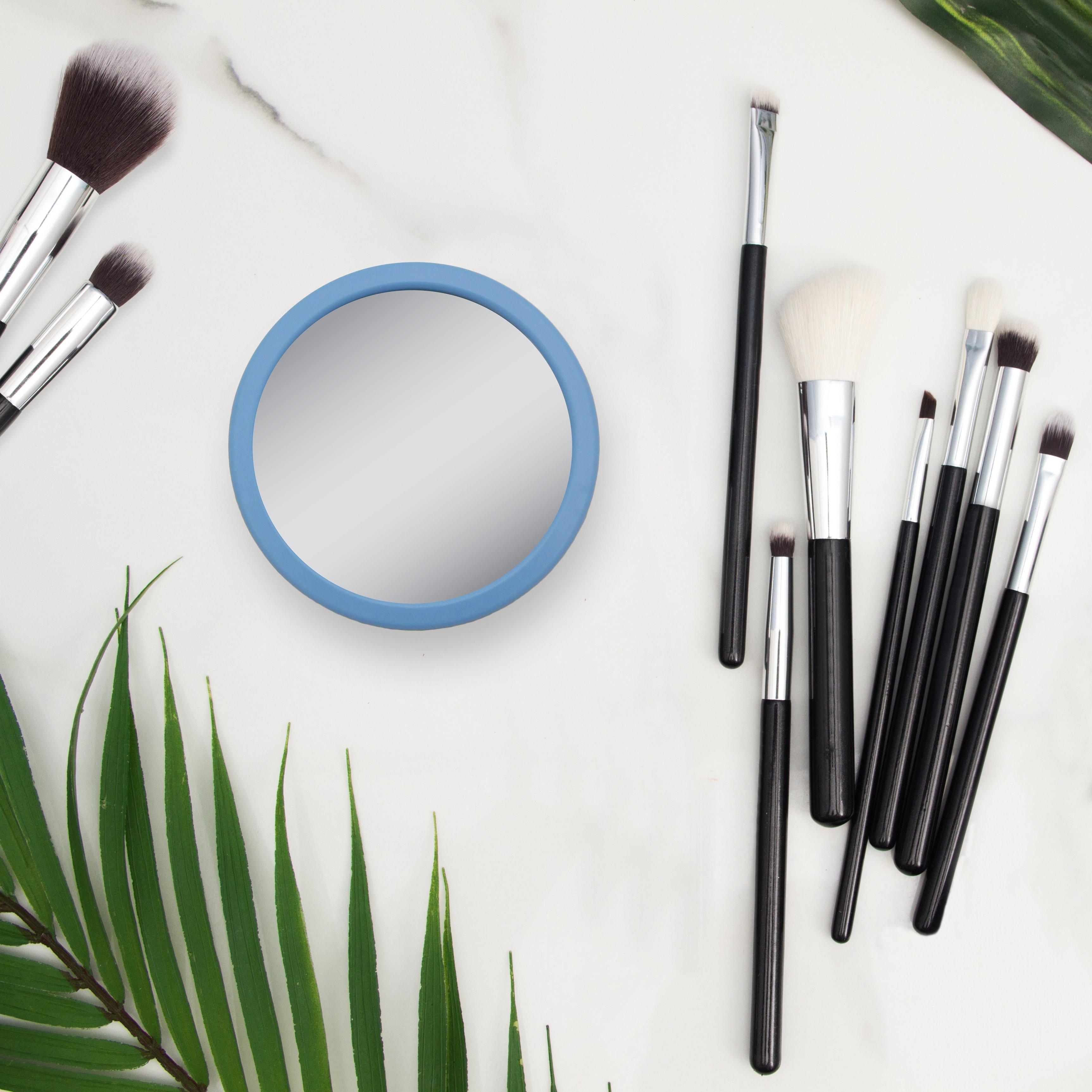 Portable 12-times magnification glass face mirror. Suction cups mount to almost all smooth services like glass and tile.
