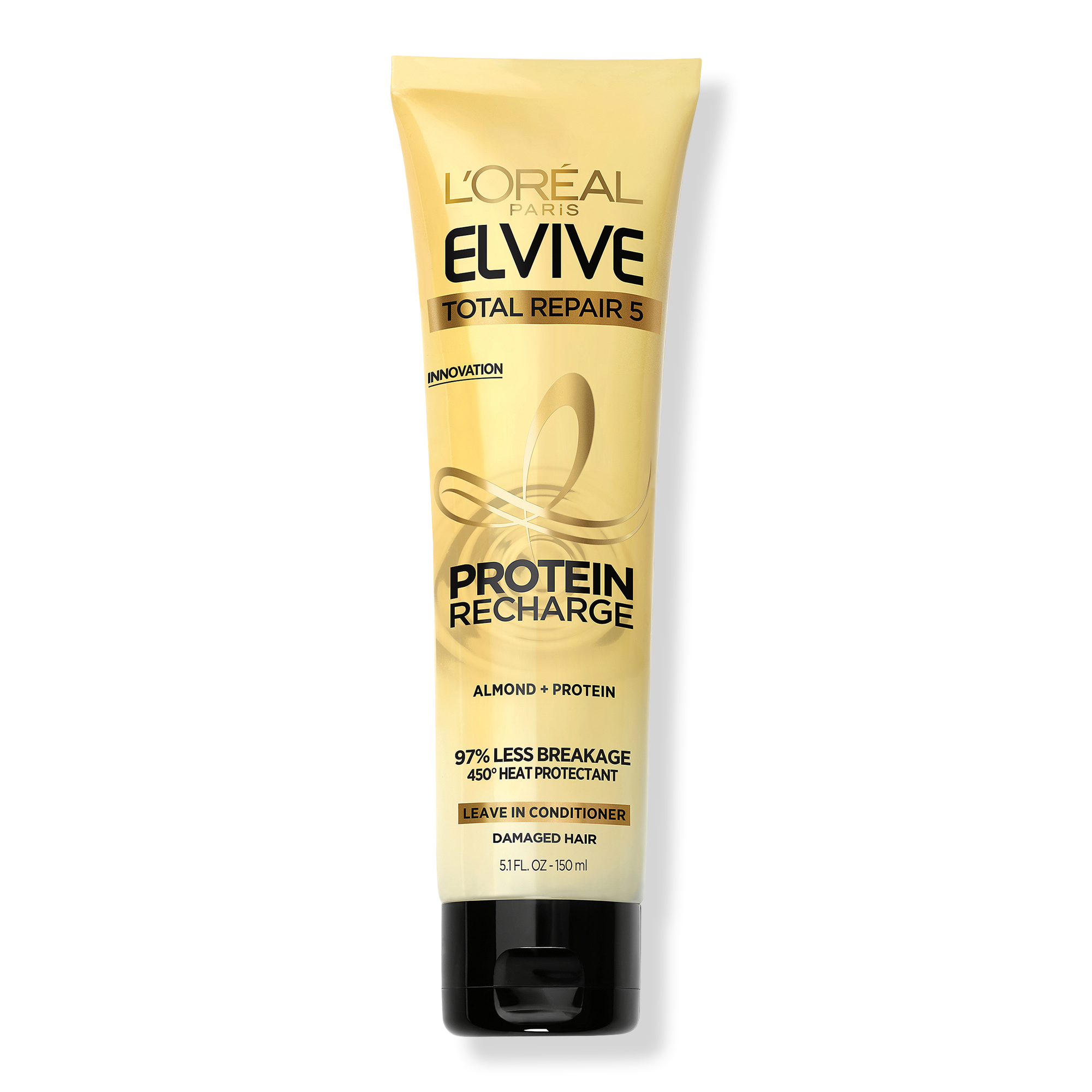 Fights 5 signs of damaged hair with L'Oréal Total ReparElvive Total Repair 5 Protein Recharge Treatment. Creamy leave-in conditioner nourishes hair to reinforce against daily damage.