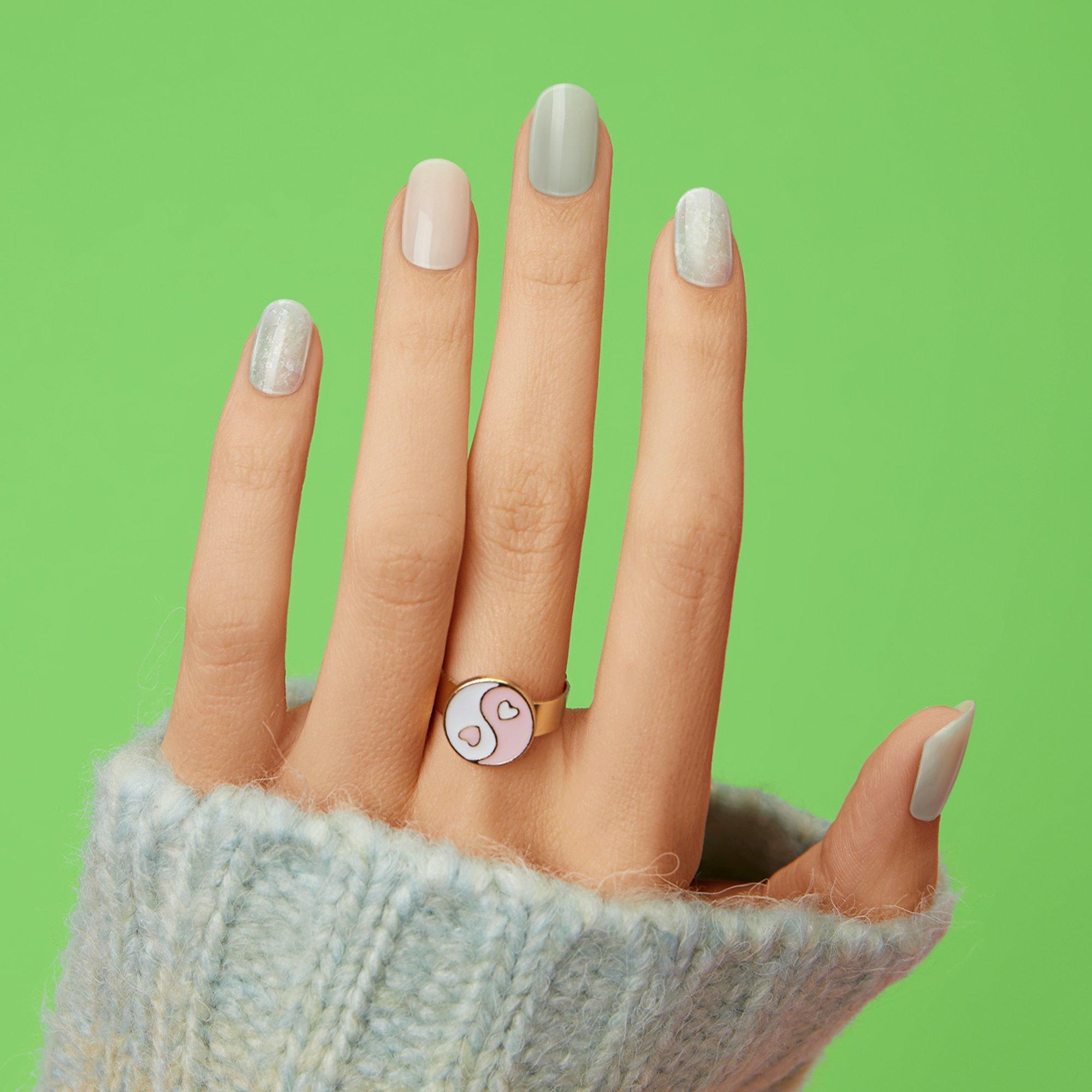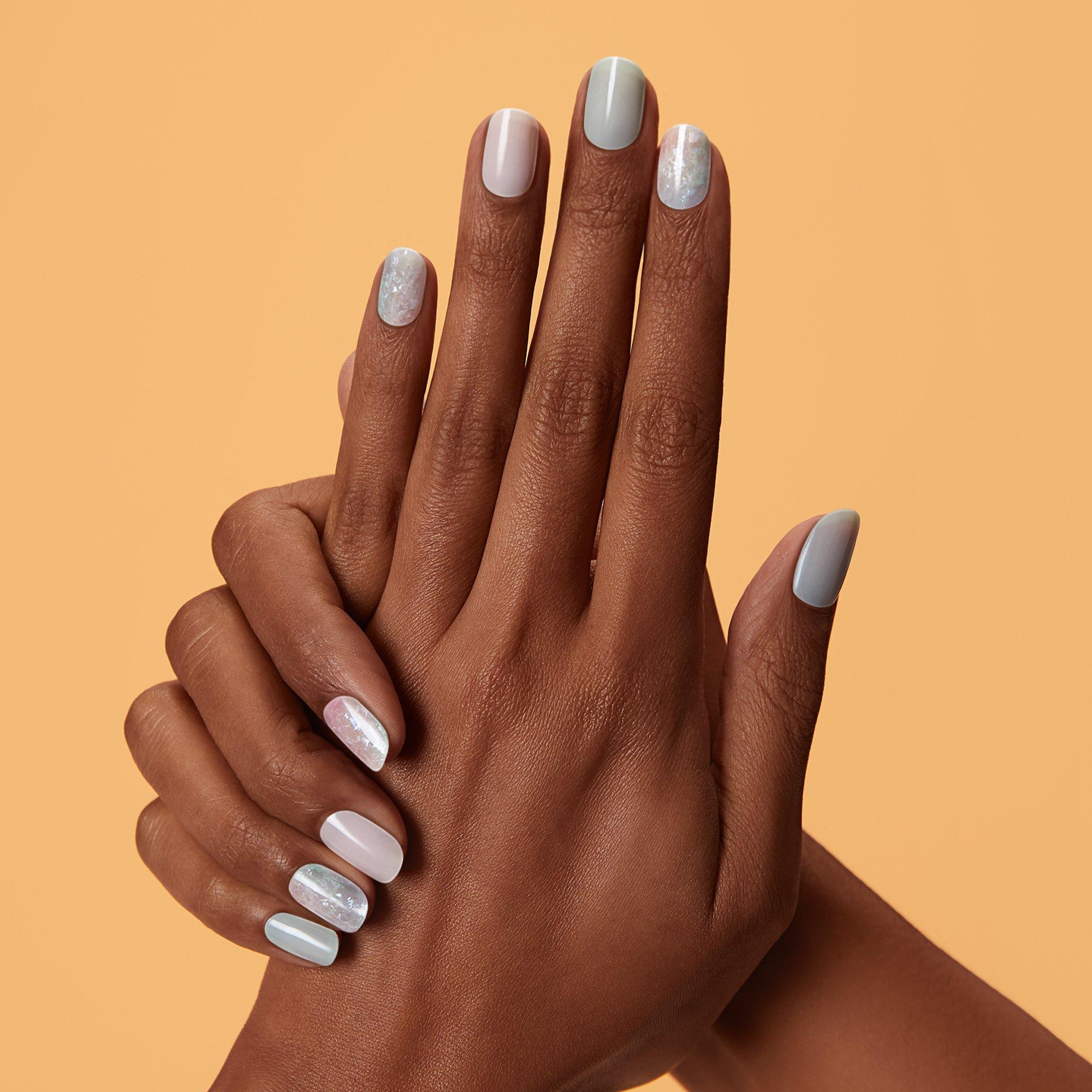 Get the pro-finish and sculpted effect of a salon gel manicure at home with ease with Dashing Diva's Emerald Marble GLAZE. GLAZE innovation is a semi-cured gel strip that cures under an LED lamp, delivering salon results: molded shape, mega volume, mirror shine that's gel strong for up to 14 days.
