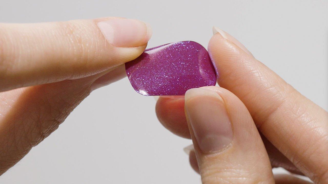 Step 3: Apply - Gently lift strip from sheet starting from edge. Place strip over the center of your nail, starting at cuticle line and pressing outward. For optimal adhesion, the strip should be placed above the cuticle line avoiding skin or cuticles.