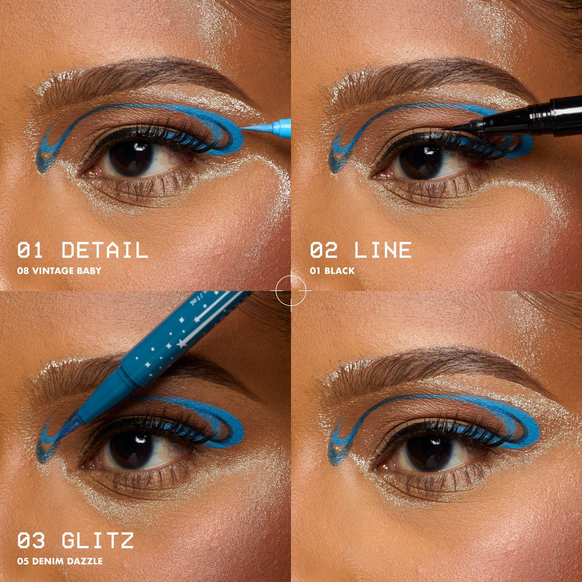 Use the Ultra precise brush tip to trace along lash line. Press down to create a thicker line. For a lifted cat-eye look, flick upwards at outer corner.