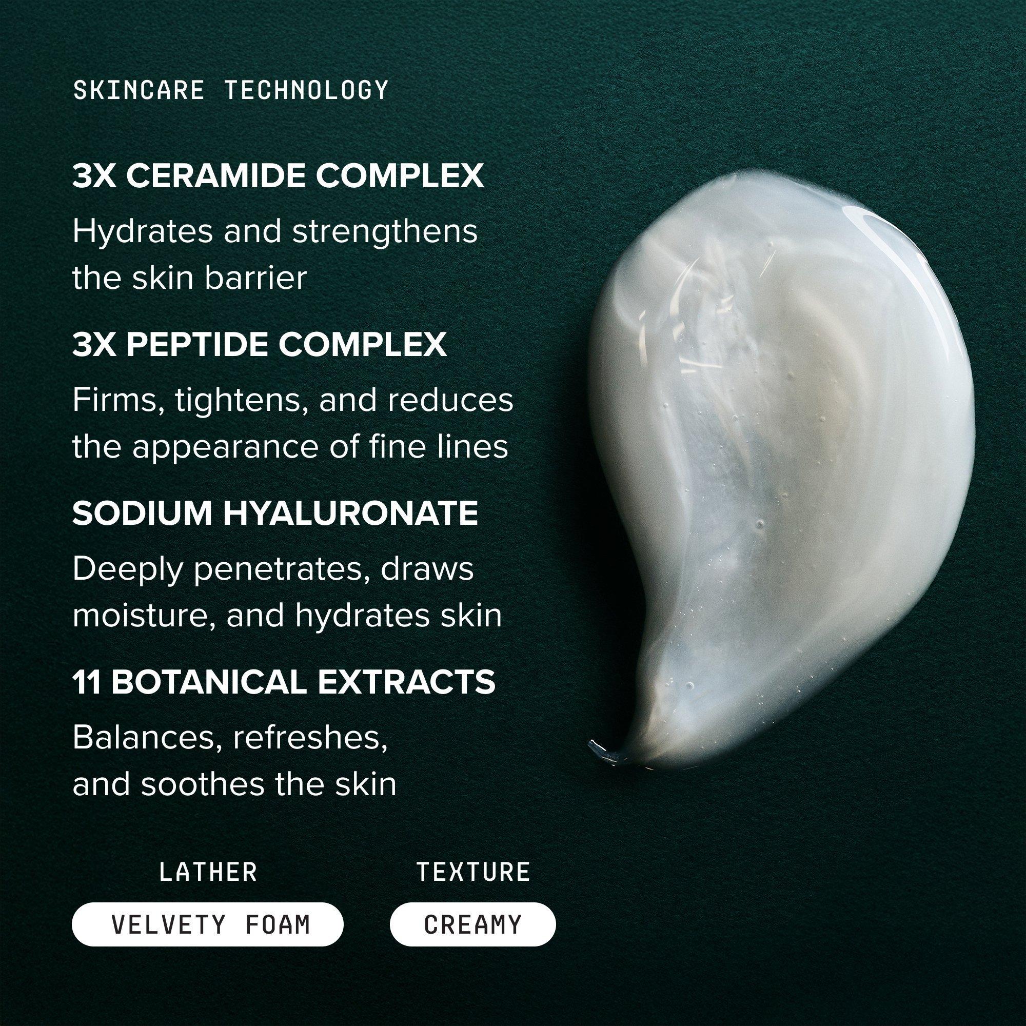 A hydrating cream cleanser enriched with 11 botanical extracts that deeply nourishes while effortlessly removing impurities. Skin feels hydrated, balanced, and soft, revealing a refreshed, luminous complexion that looks healthier with every cleanse.