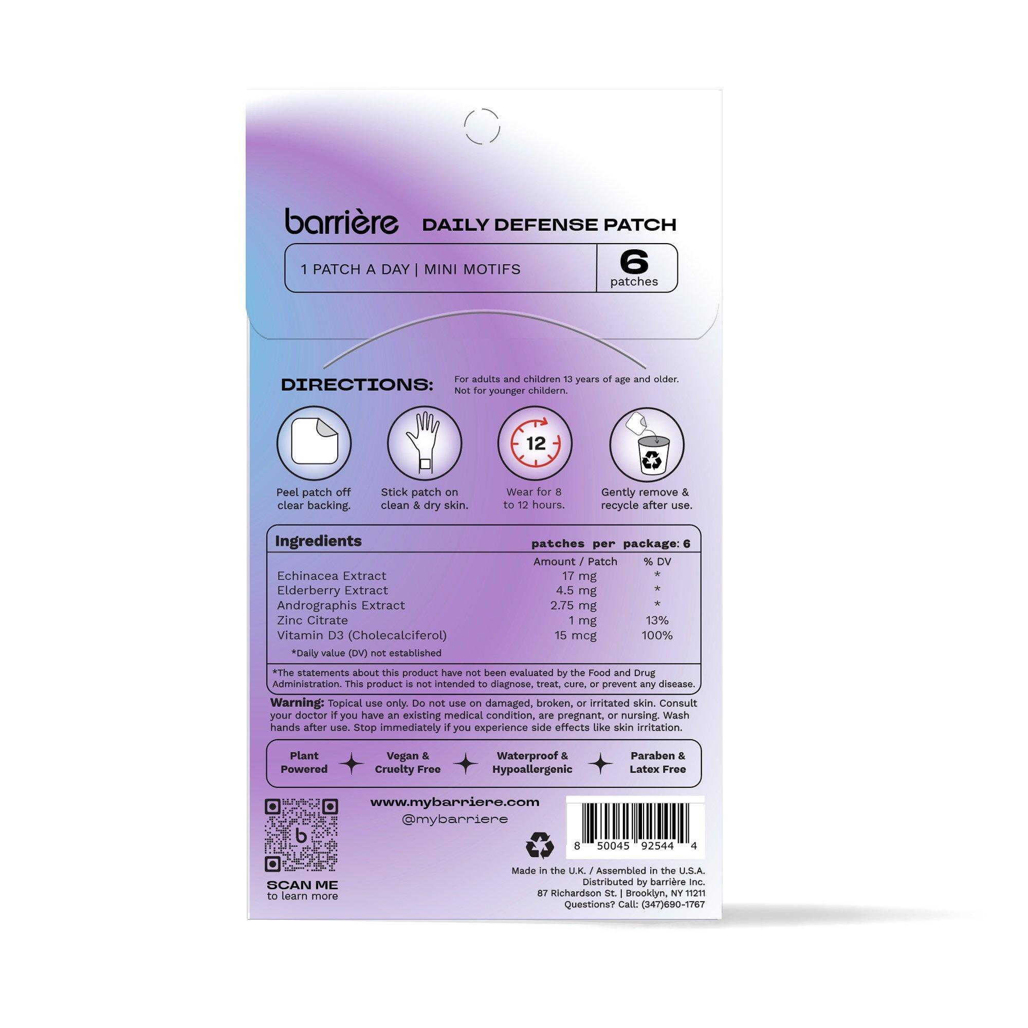 The Barrière Everyday Defense Patch 6 Pack retails for US$18.00 in the US. To get a shipping quote for delivery to your international location, simply add the item to the cart above. You will then be taken to a page where you can enter your shipping details to see the cost and estimated delivery times for the available shipping options.