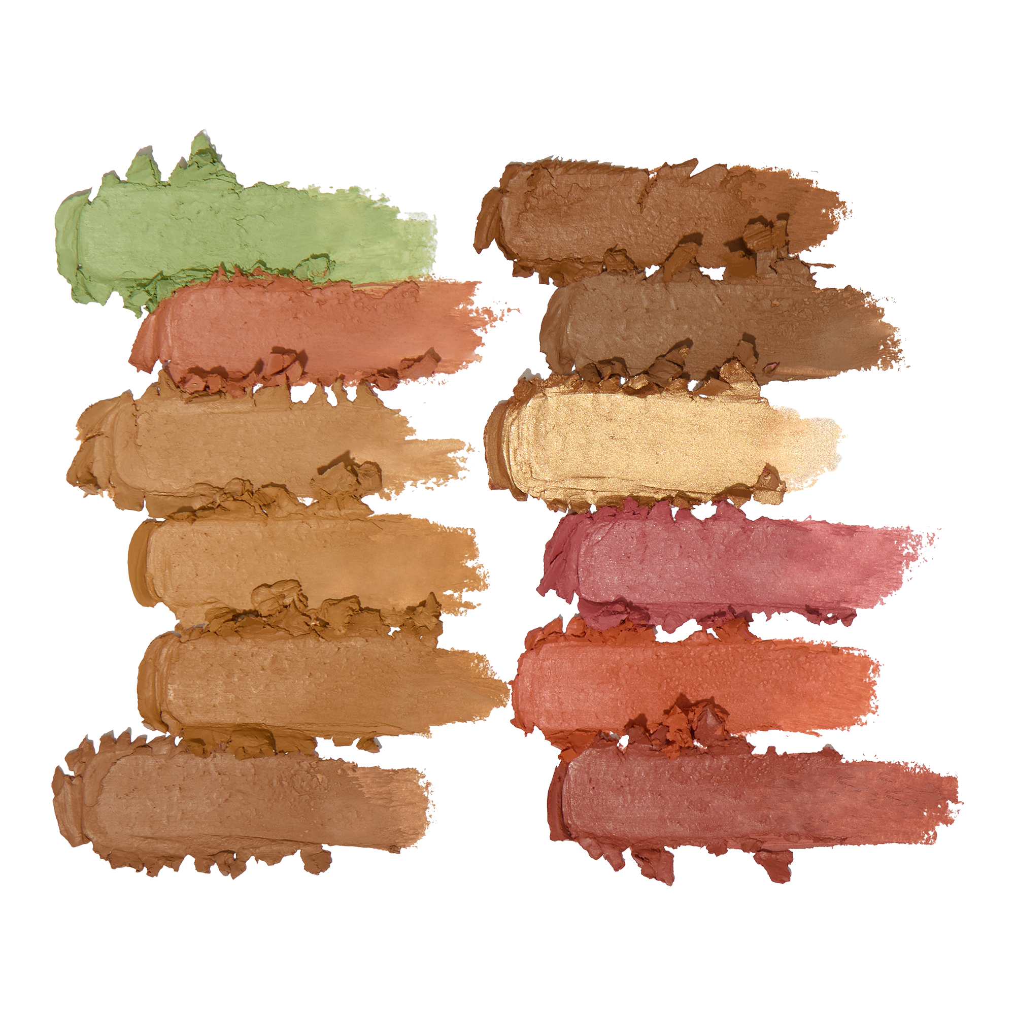 Use the color correctors to neutralize any discoloration. Apply concealers to cover blemishes and even out your skin tone. Blend contour, blush, and highlight shades to sculpt and add a natural glow.