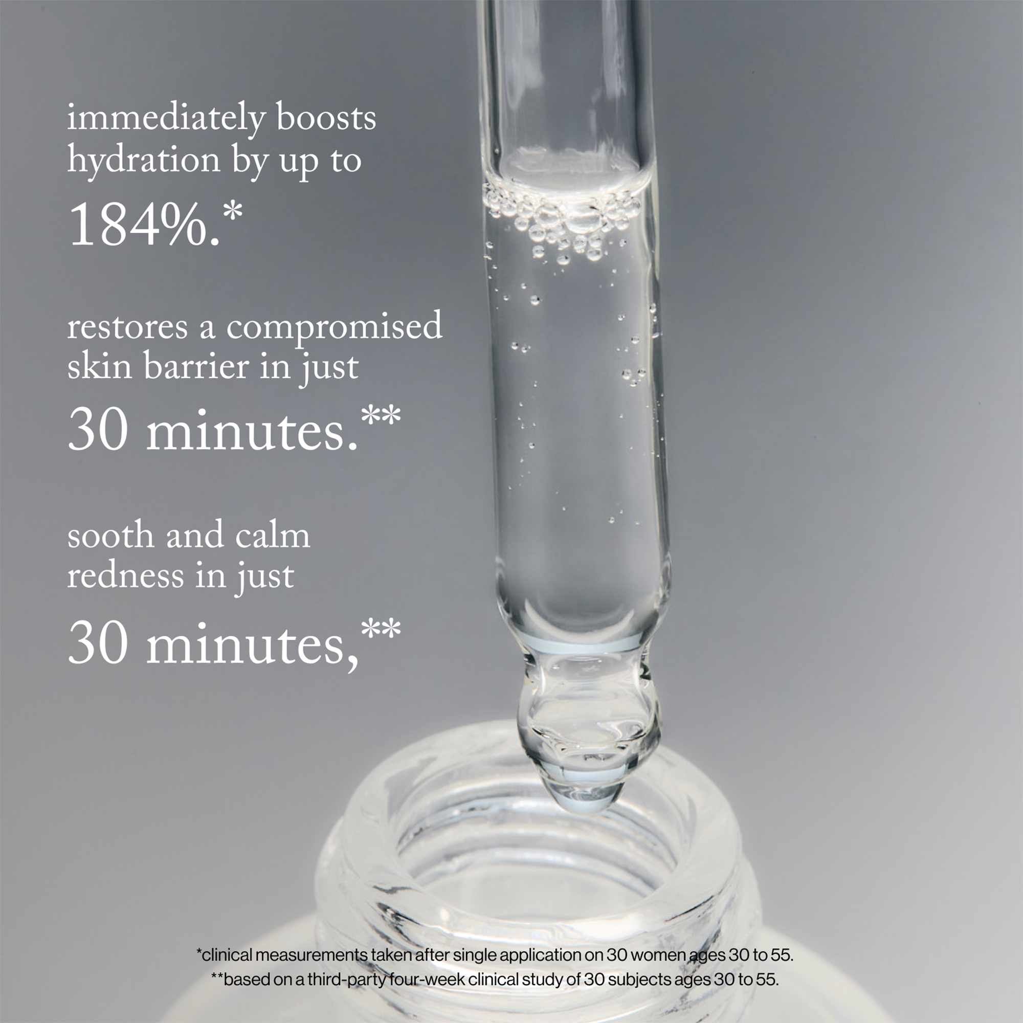Formulated with over 3 million cica leaf exosomes per bottle, this clinically proven serum delivers deep, lasting hydration to strengthen the skin’s barrier function and build resiliency, leaving skin plump, radiant, supple, soft, and smooth.