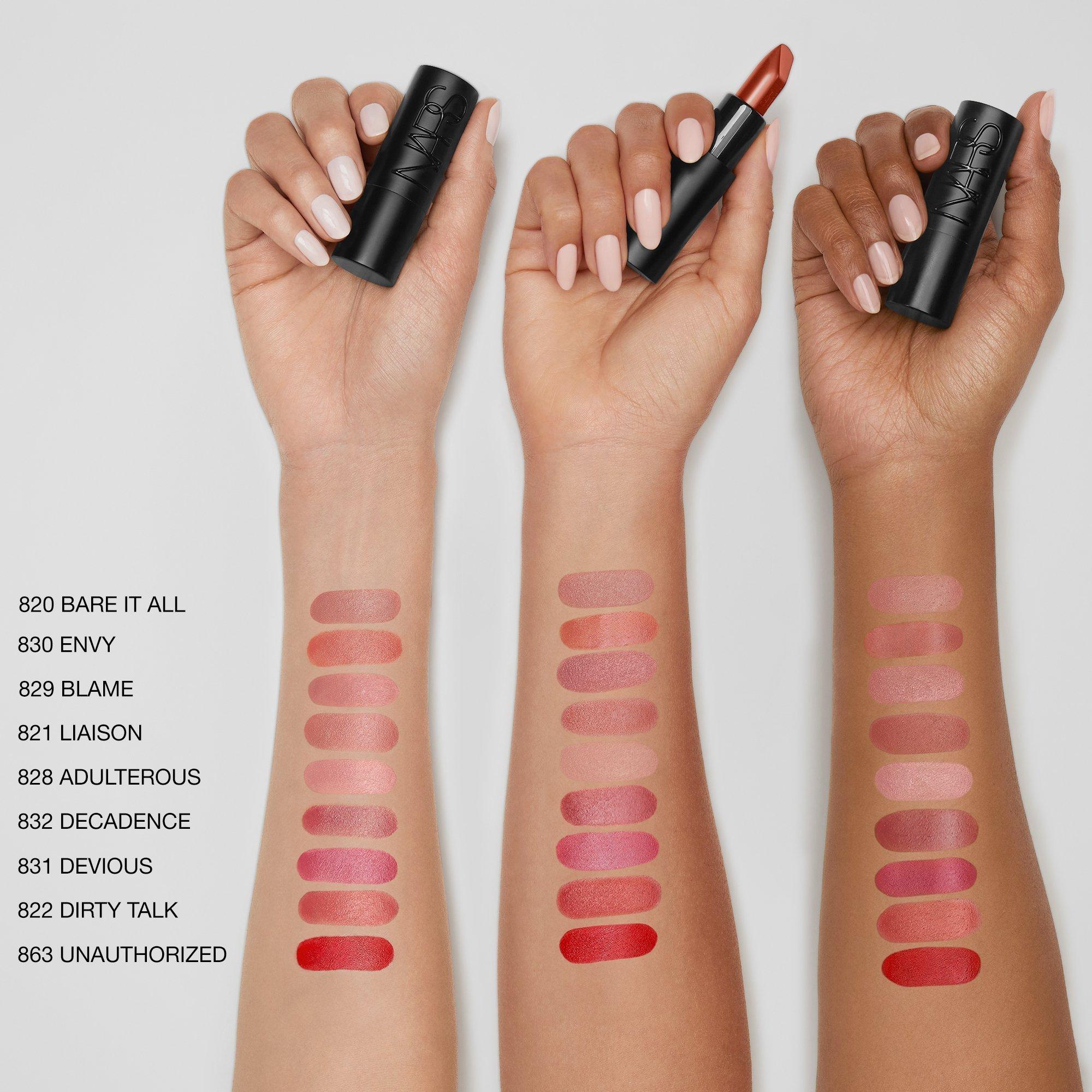 NARS Explicit Lipstick is a high-end dimensional satin lipstick that delivers long-lasting comfort with vibrant, pure-color payoff and creamy, smudge-resistant wear. Precision-tip bullet defines and contours for sculpted sophistication and lightweight, medium-to-full coverage.