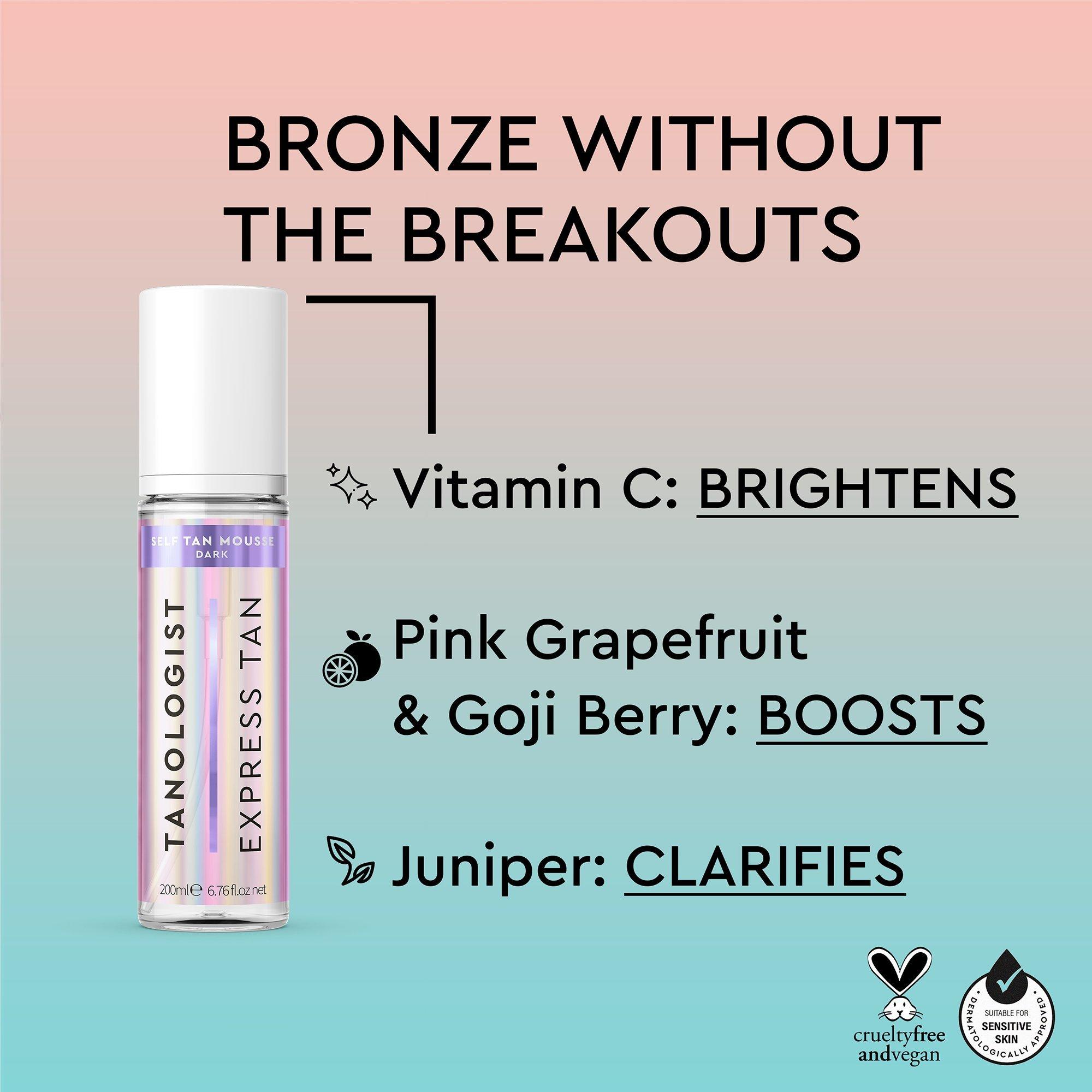 Achieve a flawless, long-lasting tan with Tanologist's transparent, water-to-foam Express Self Tan Mousse. The streak-free, fast-drying formula won't clog pores or transfer.