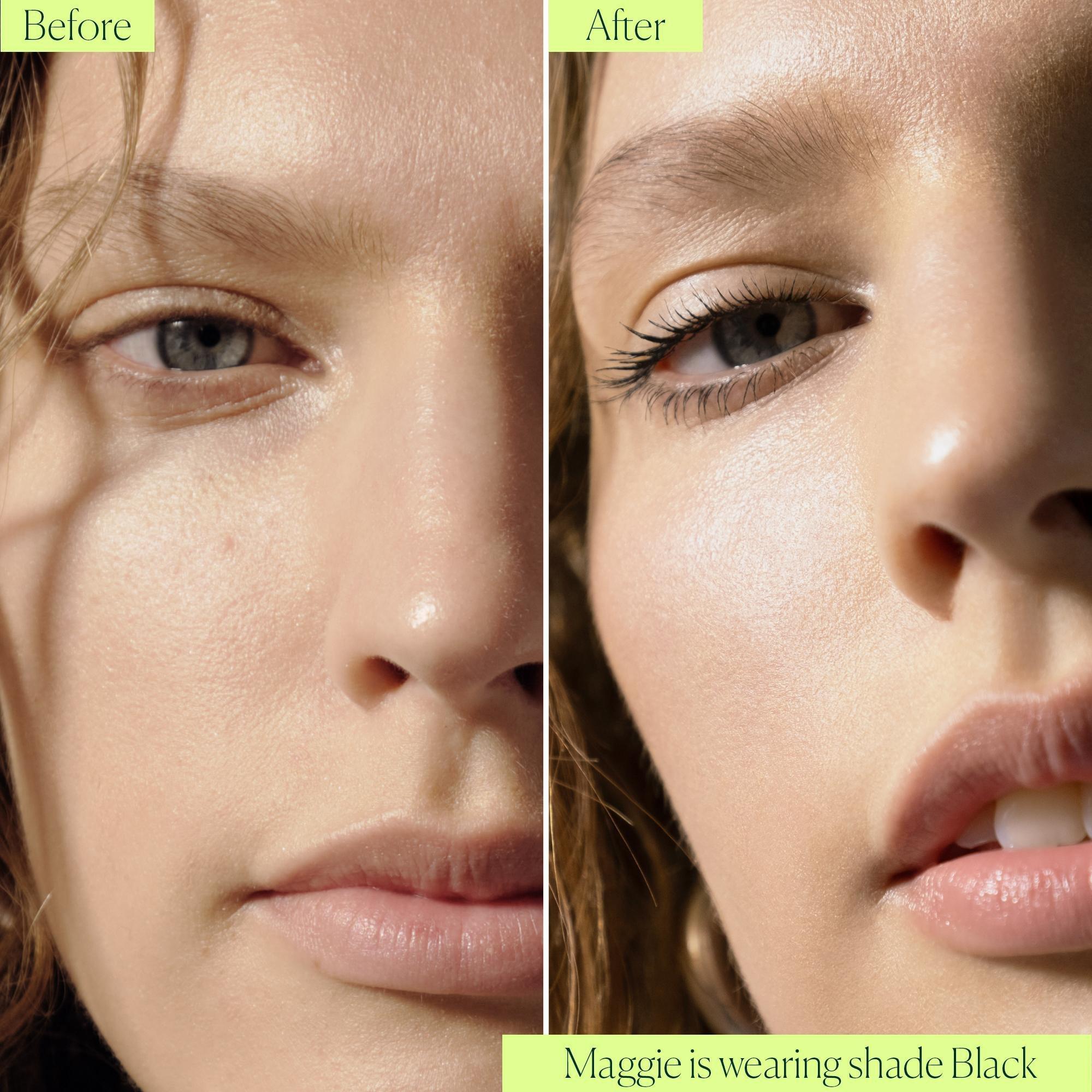 Starting at the base of your lashes, wiggle wand back and forth while gently twirling the brush up from the base to the tip of your lashes. For best results, apply two coats.