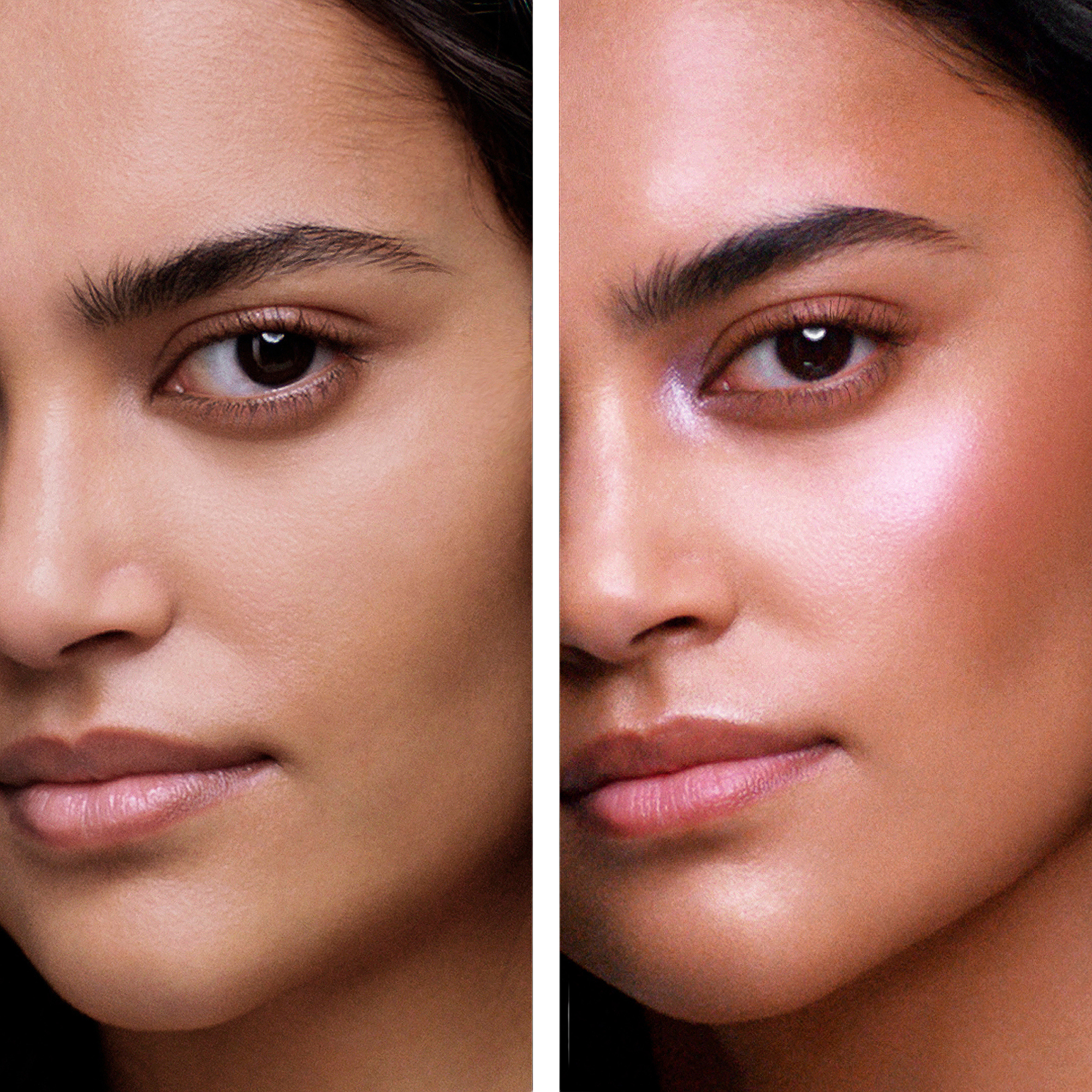 Apply highlighter to face using a brush as desired.