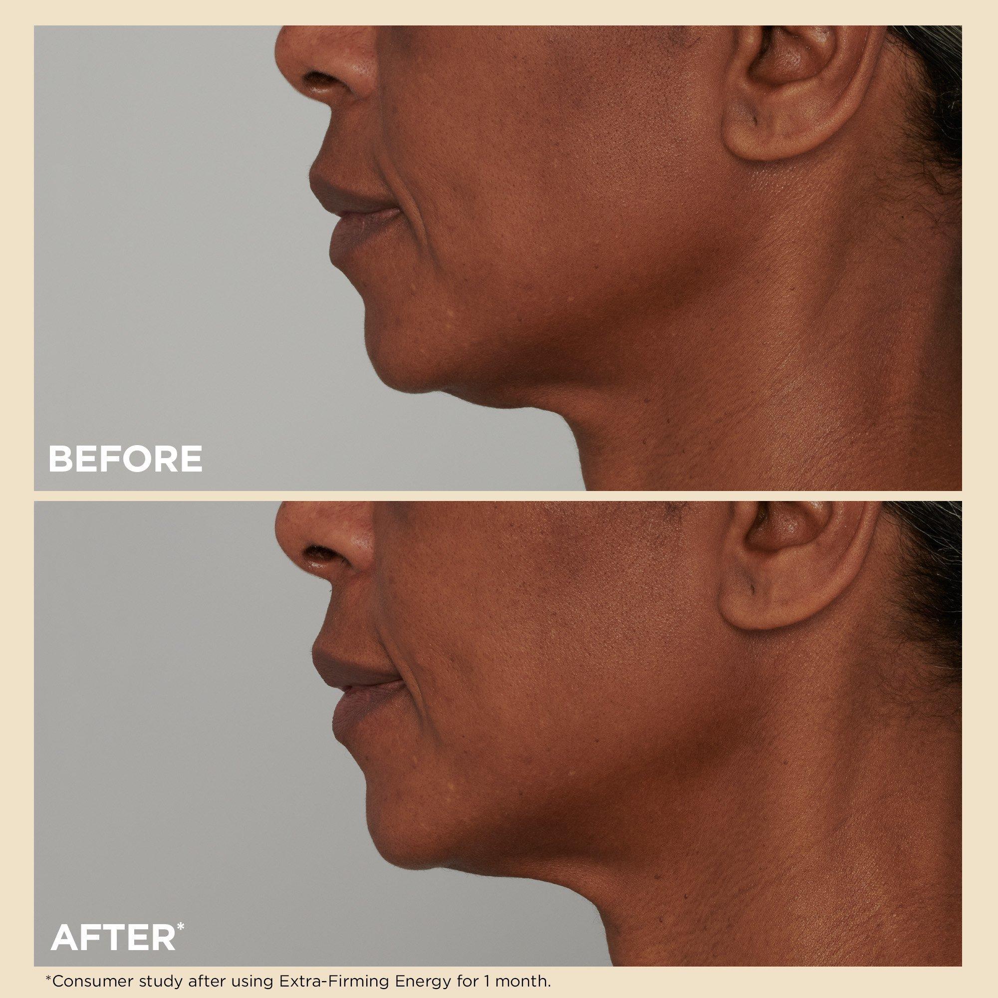 Extra-Firming Energy Moisturizer is a 2-in-1 firming + radiance-boosting cream with Collagen Polypeptide, Red Ginseng, Niacinamide-proven to visibly smooth, plump, contour, brighten & even.