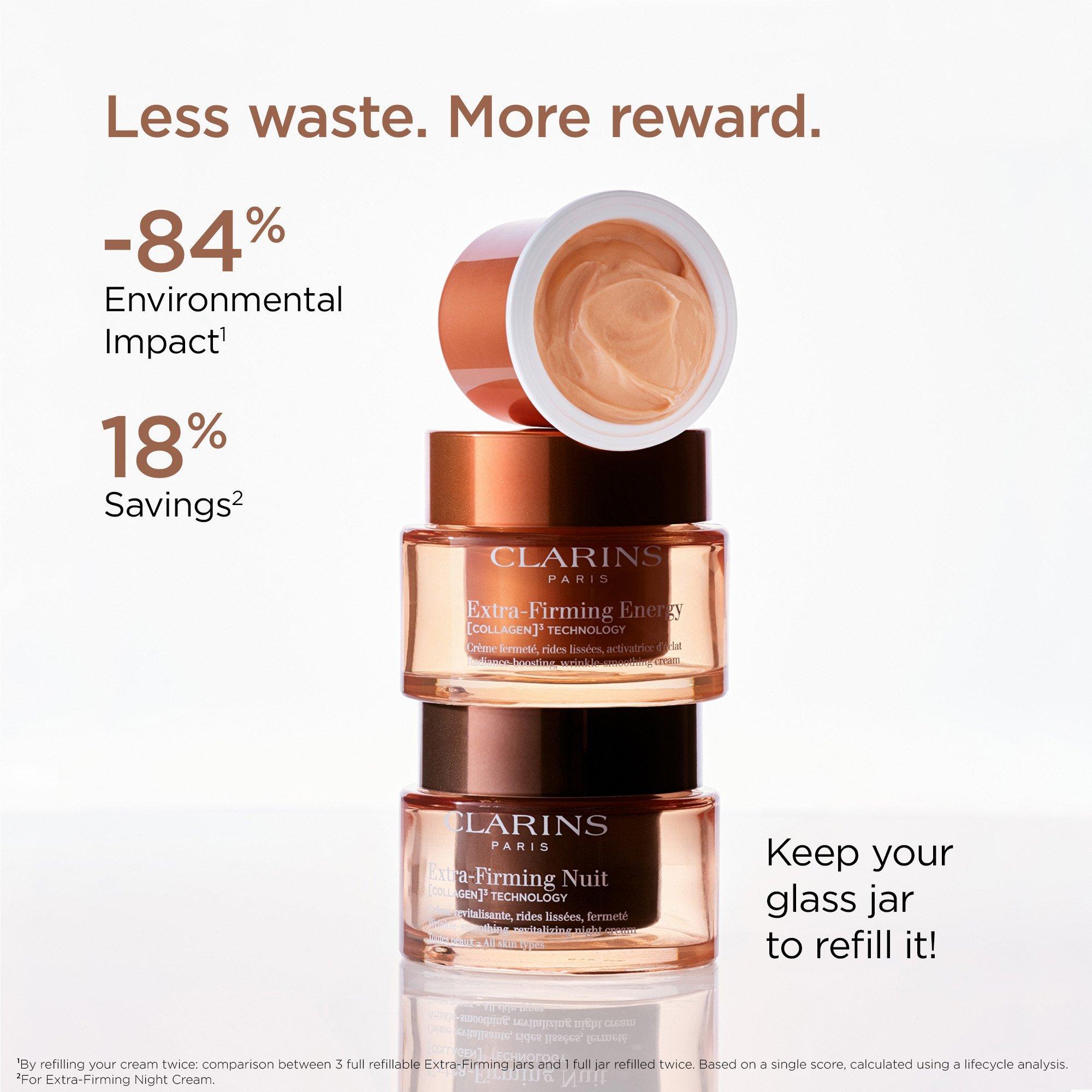 Clarins Extra-Firming Night Refillable Moisturizer is a firming & renewing night cream with Collagen Polypeptide, Avocado Peptides & Niacinamide-proven to visibly smooth, plump, contour & even skin.