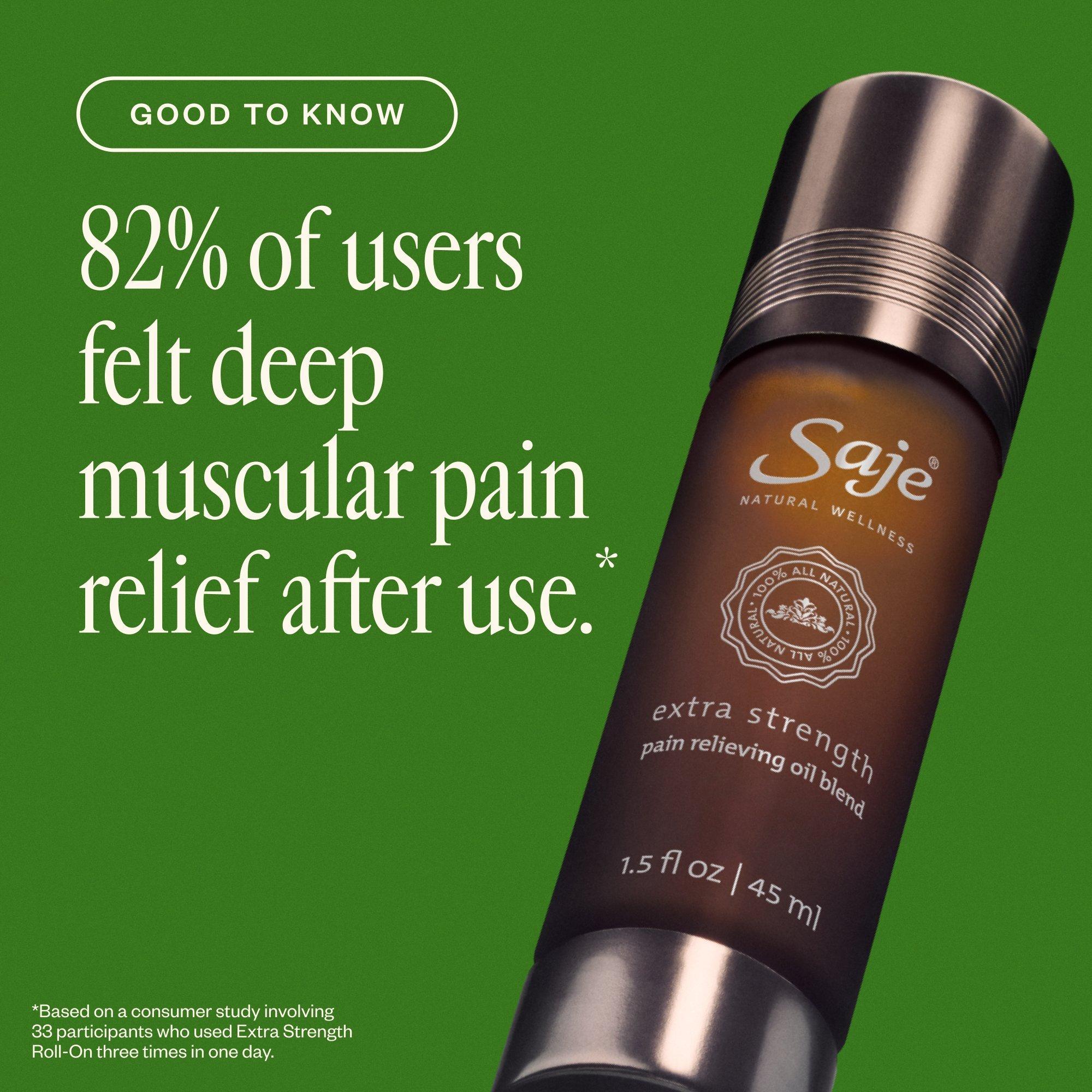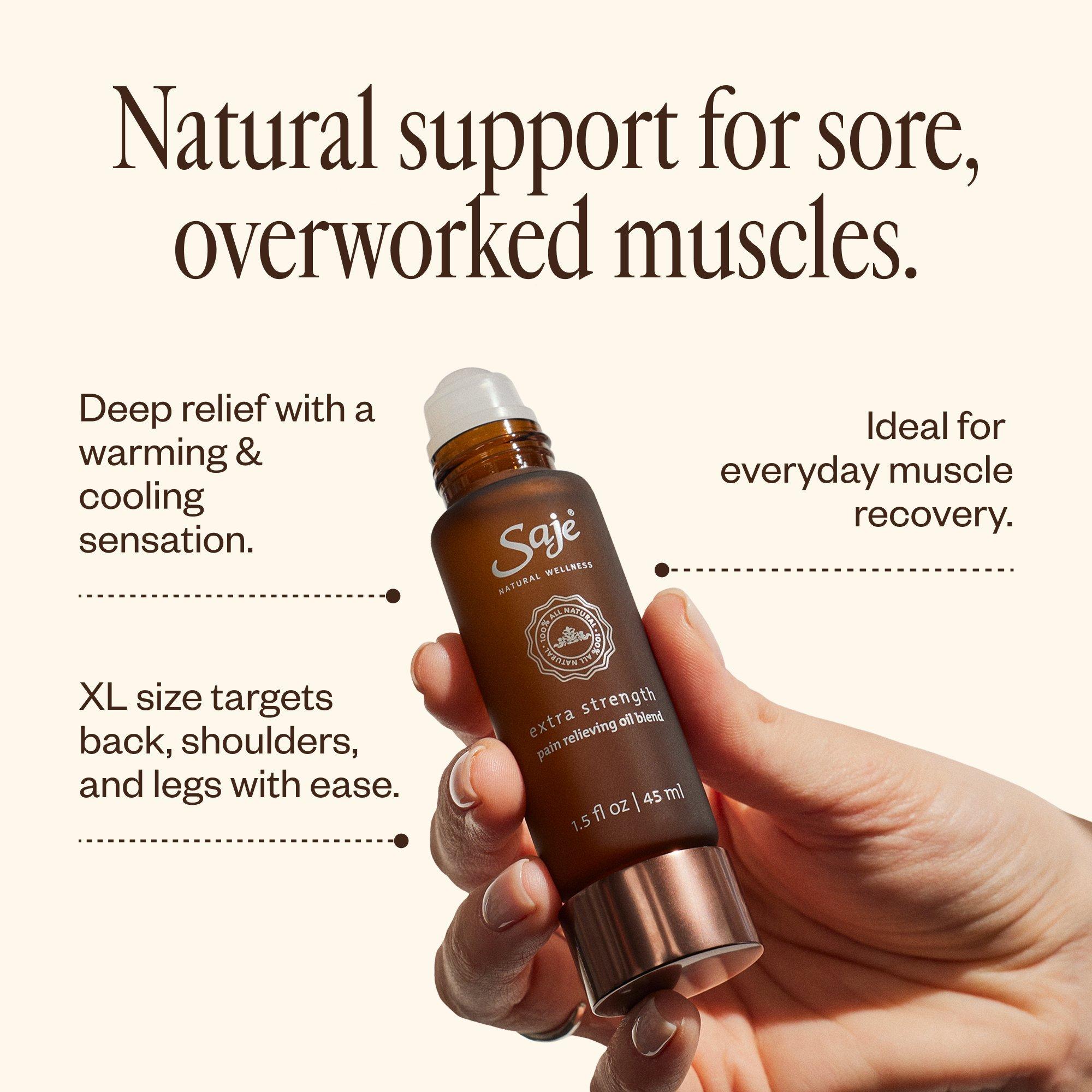 Saje Natural Wellness's Extra Strength Pain-Relieving Oil Blend is an extra-large roll-on for extra-sore muscles, Extra Strength blends the power of plants to remedy aches and pains, naturally.