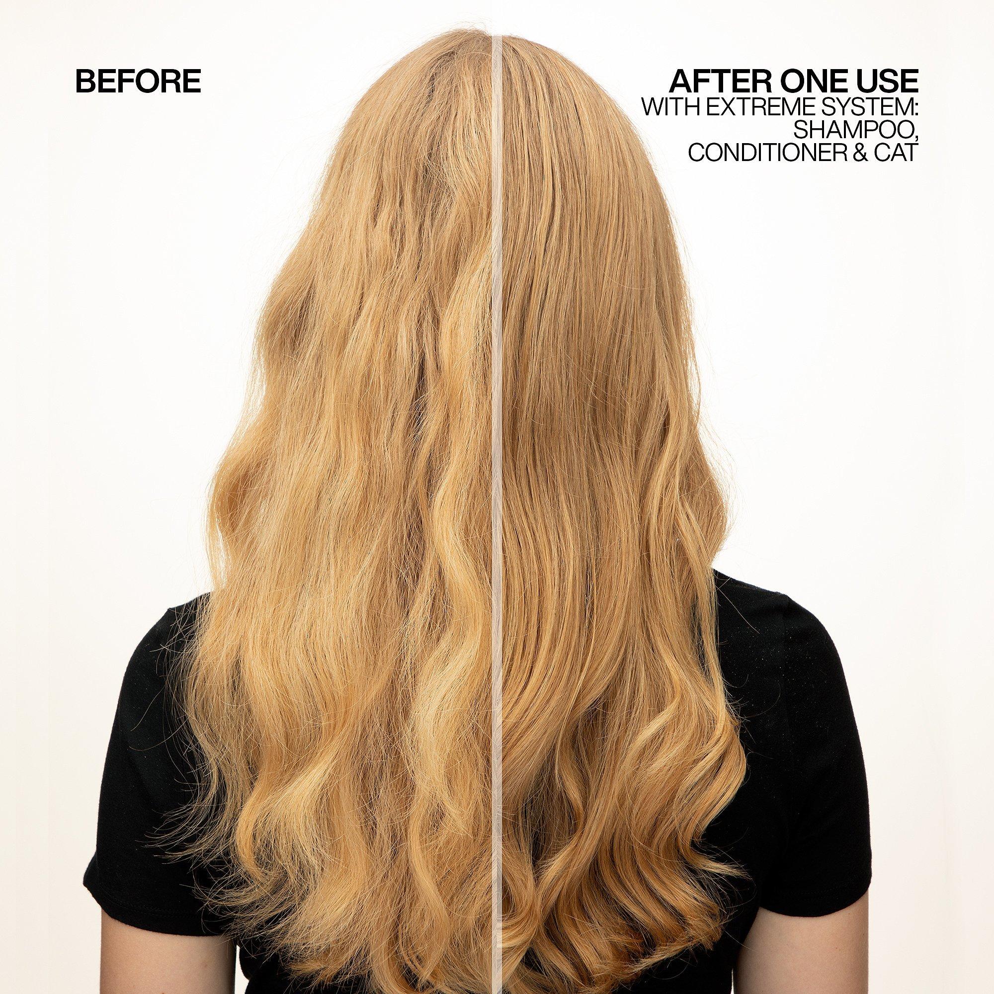 Redken's Extreme CAT is a rinse-out hair treatment that adds immediate strength to distressed, brittle hair. This professional product reconstructs and reconditions without adding any weight to the hair.