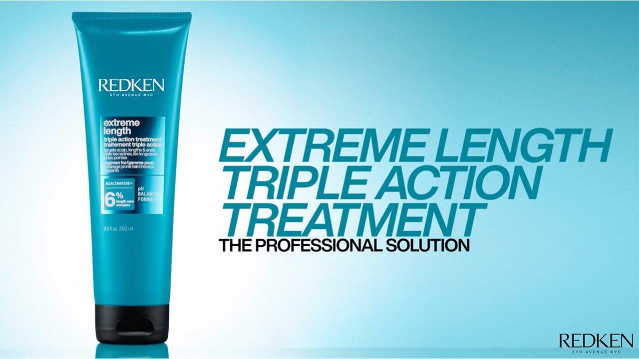 Redken Extreme Length Triple Action Treatment Mask is a 5-minute treatment mask formulated with biotin, niacinamide, and castor oil to promote a healthy-feeling, nourished scalp, strengthened lengths and visibly reduced split ends for longer, stronger hair.