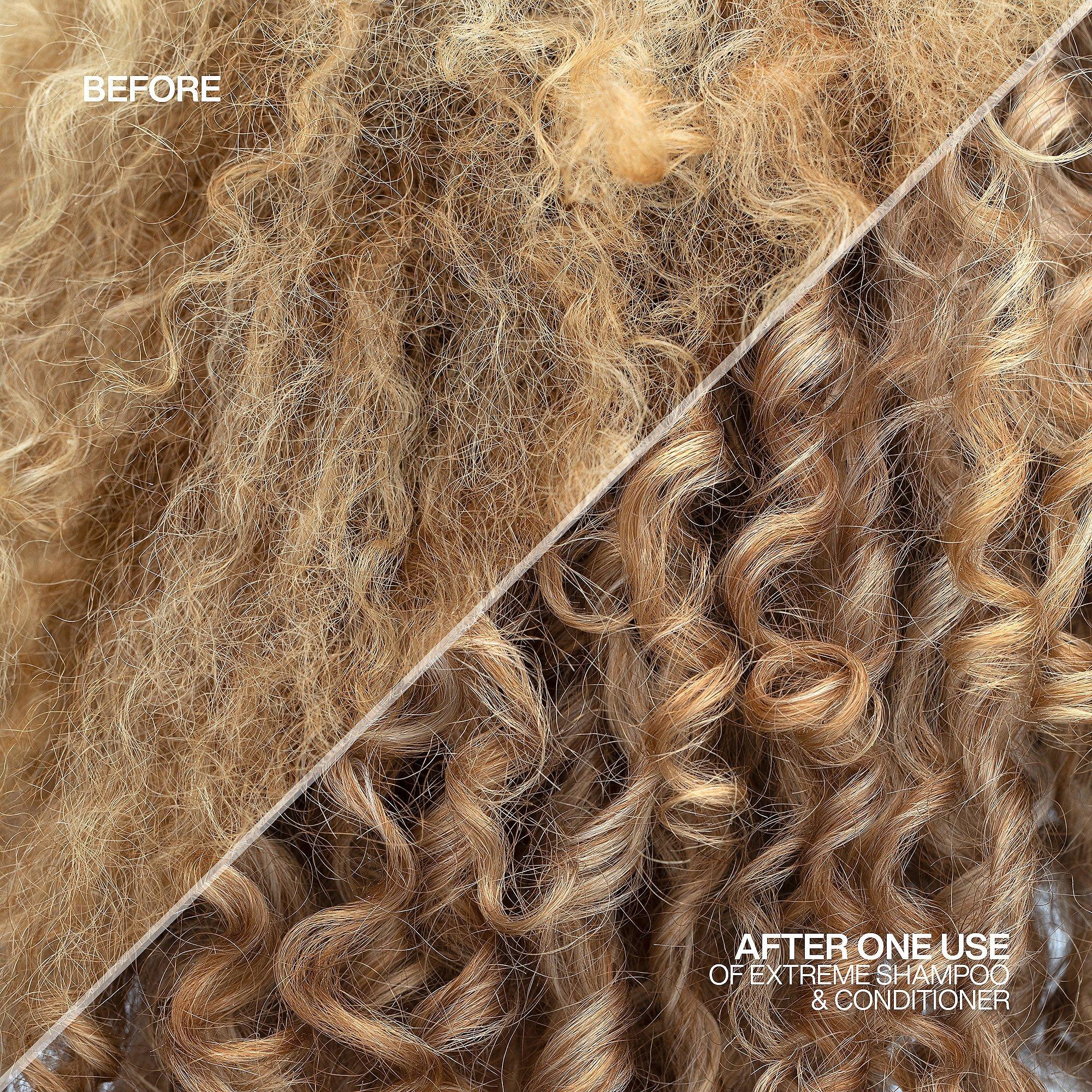 Redken's Extreme Shampoo cleanses, strengthens, and restores damaged, brittle hair. This professional product prevents future hair breakage and leaves hair with a soft, shiny finish. This shampoo works for all hair types and all types of damage.
