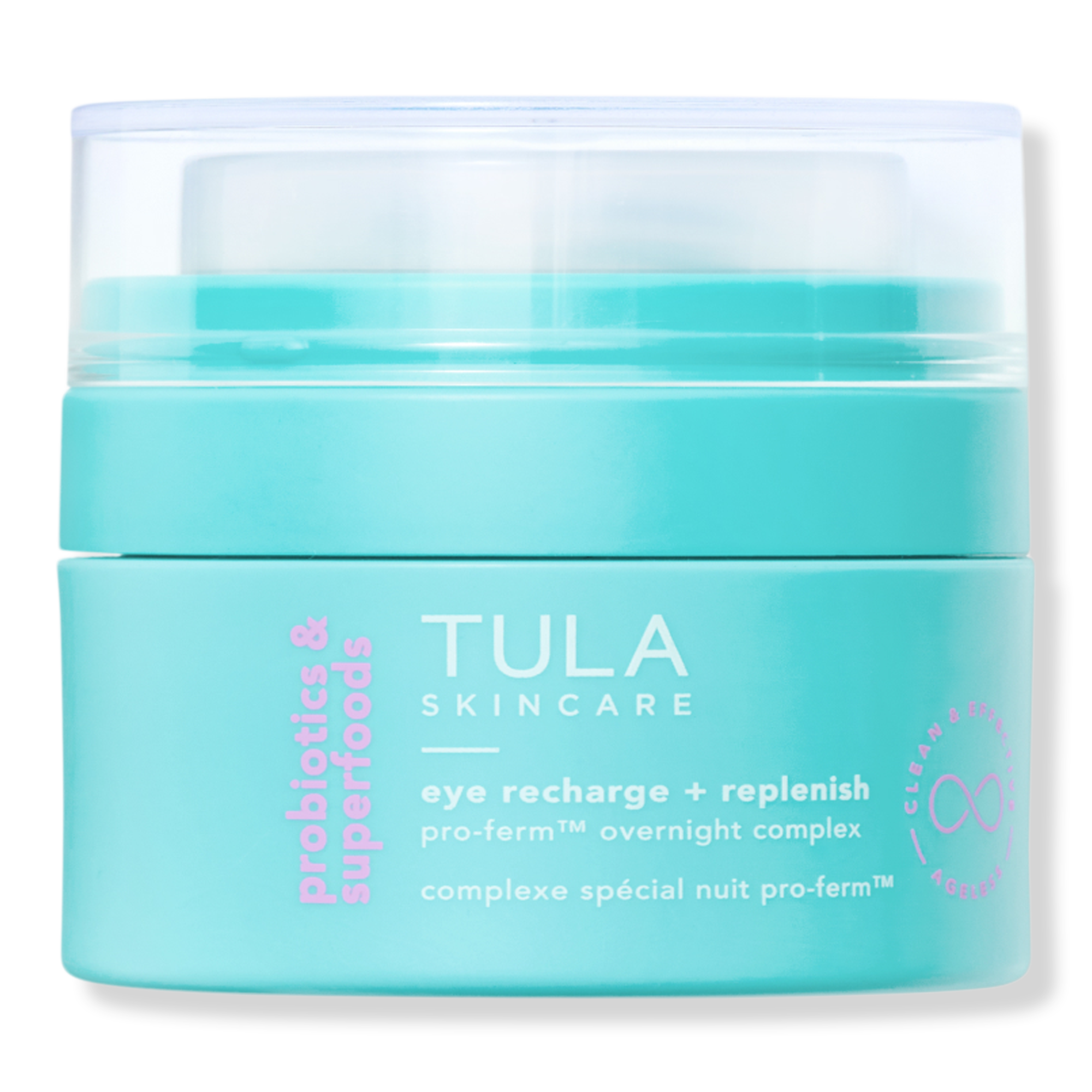 Combat the look of wrinkles + crow's feet while improving elasticity with this TULA's Eye Recharge + Replenish Pro-Ferm Overnight Eye Cream powered by retinal and tetrapeptides. This pillowy overnight cream intensely hydrates, replenishes and protects delicate skin around eyes while you sleep.