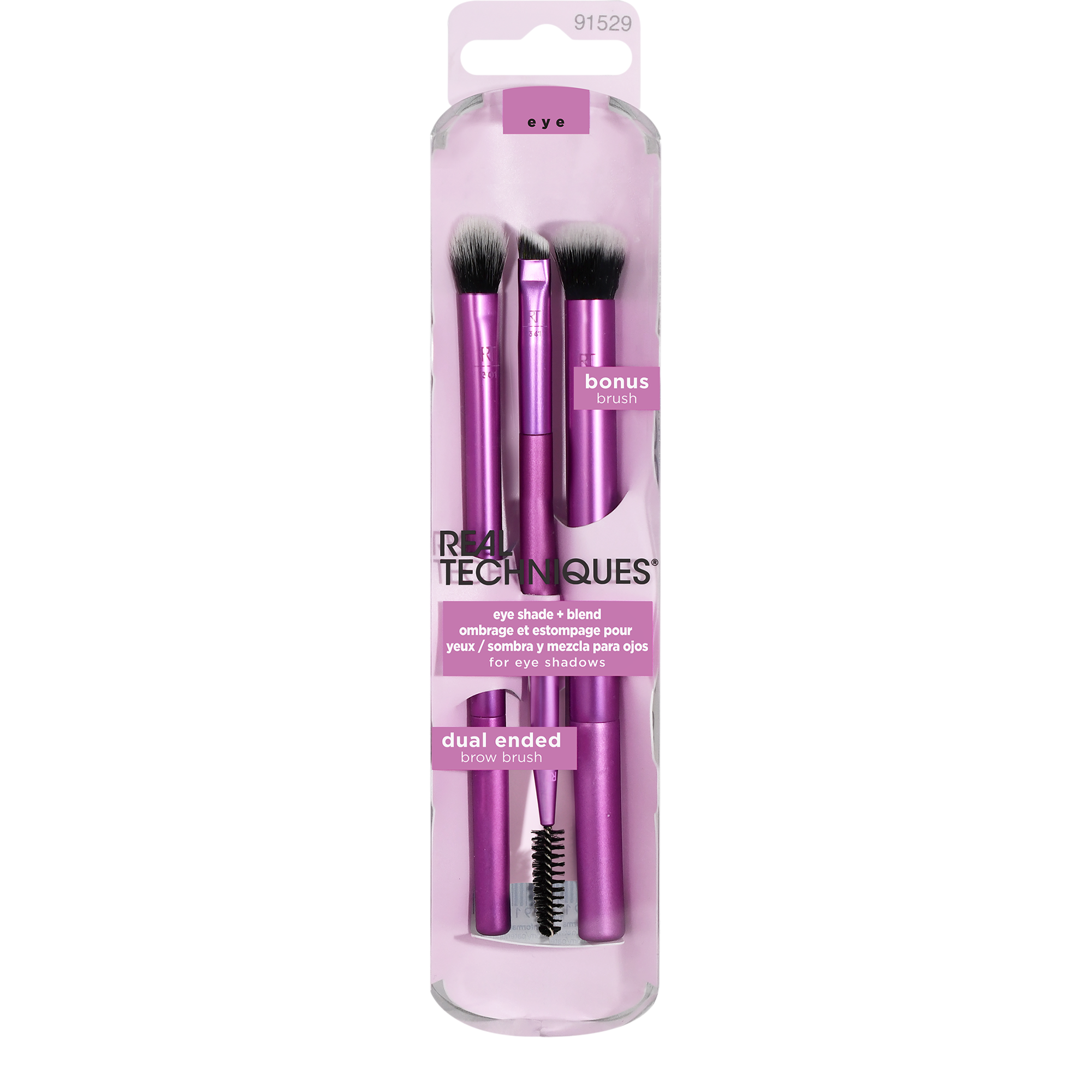 Create stunning professional-style results with the Real Techniques Eye Shade + Blend Makeup Brush Trio. Designed for two-color shadow application.