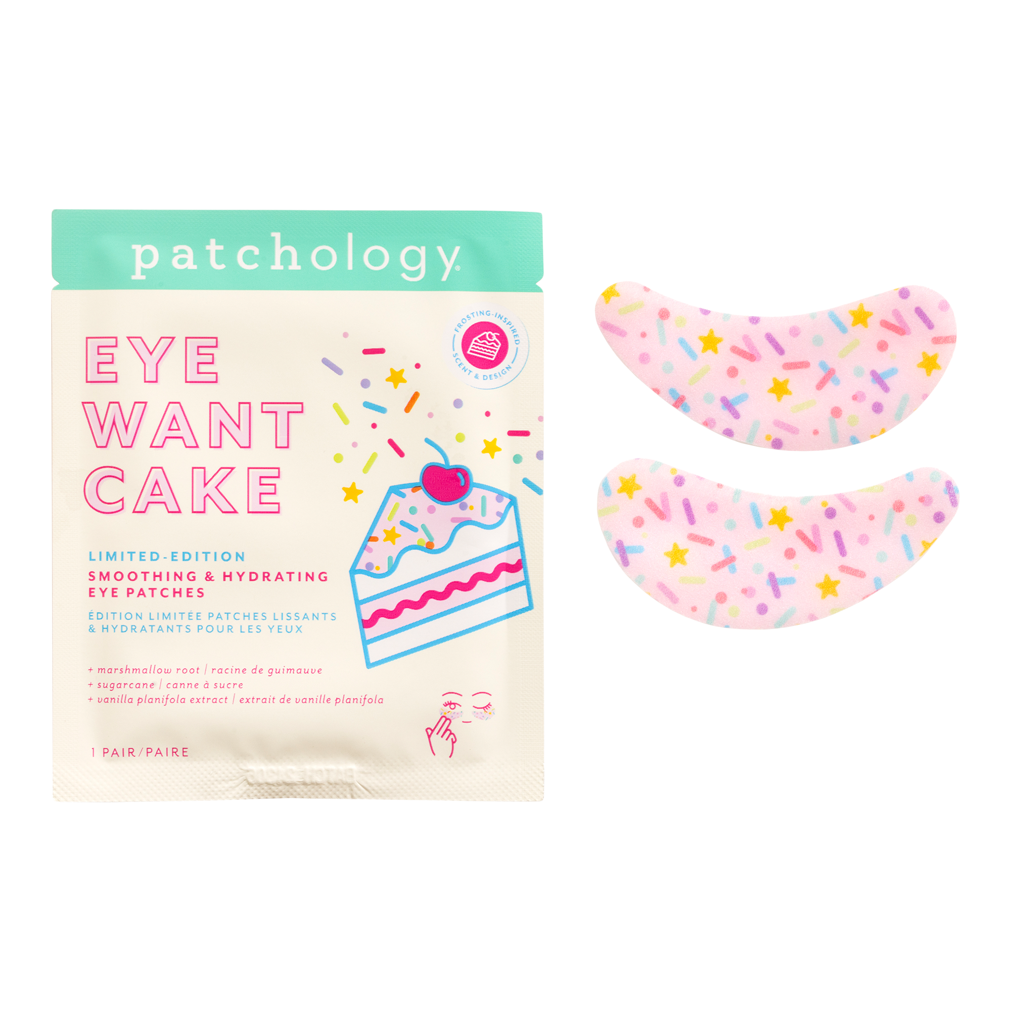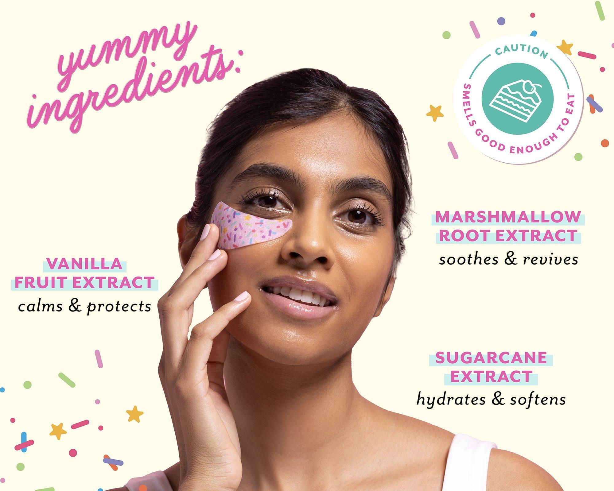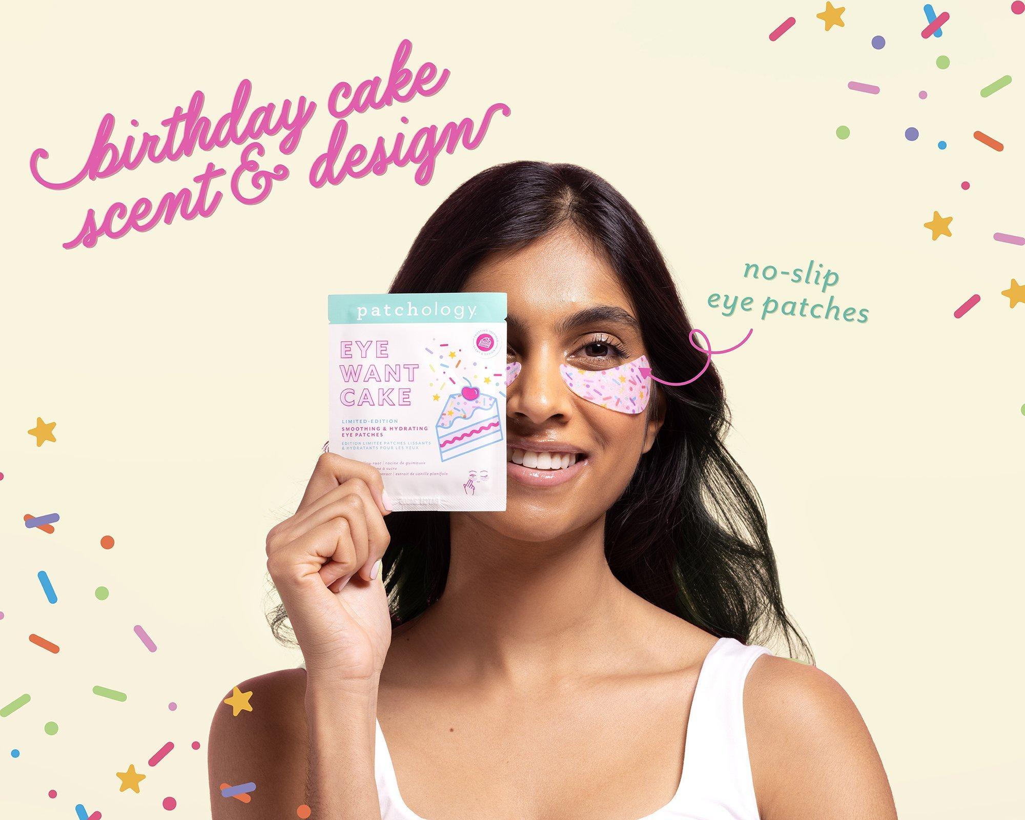 Patchology's Eye Want Cake Eye Patches packed with delicious (but powerful!) ingredients like Marshmallow Root, Sugarcane, and Vanilla Extract, these celebratory eye patches hydrate, nourish and smooth the delicate under-eye area.