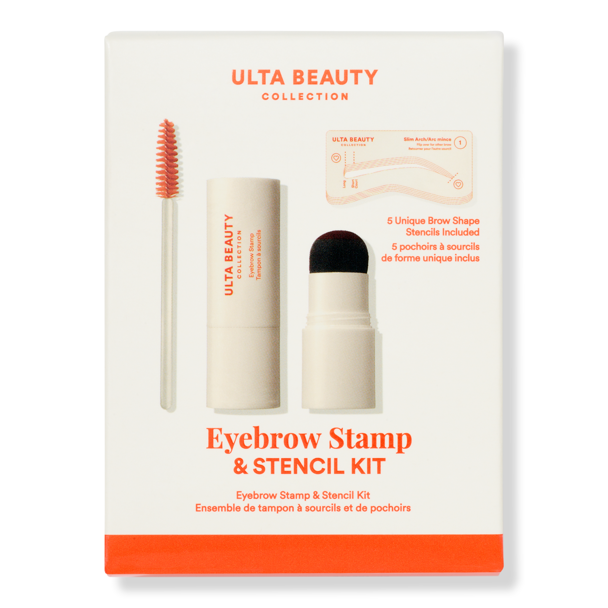 Be your own brow artist. Ulta Beauty Collection's Eyebrow Stamp & Stencil Kit lets you craft your go-to brow in seconds. Gel to powder pomade fills in color between stencils for a pigmented, soft matte look.