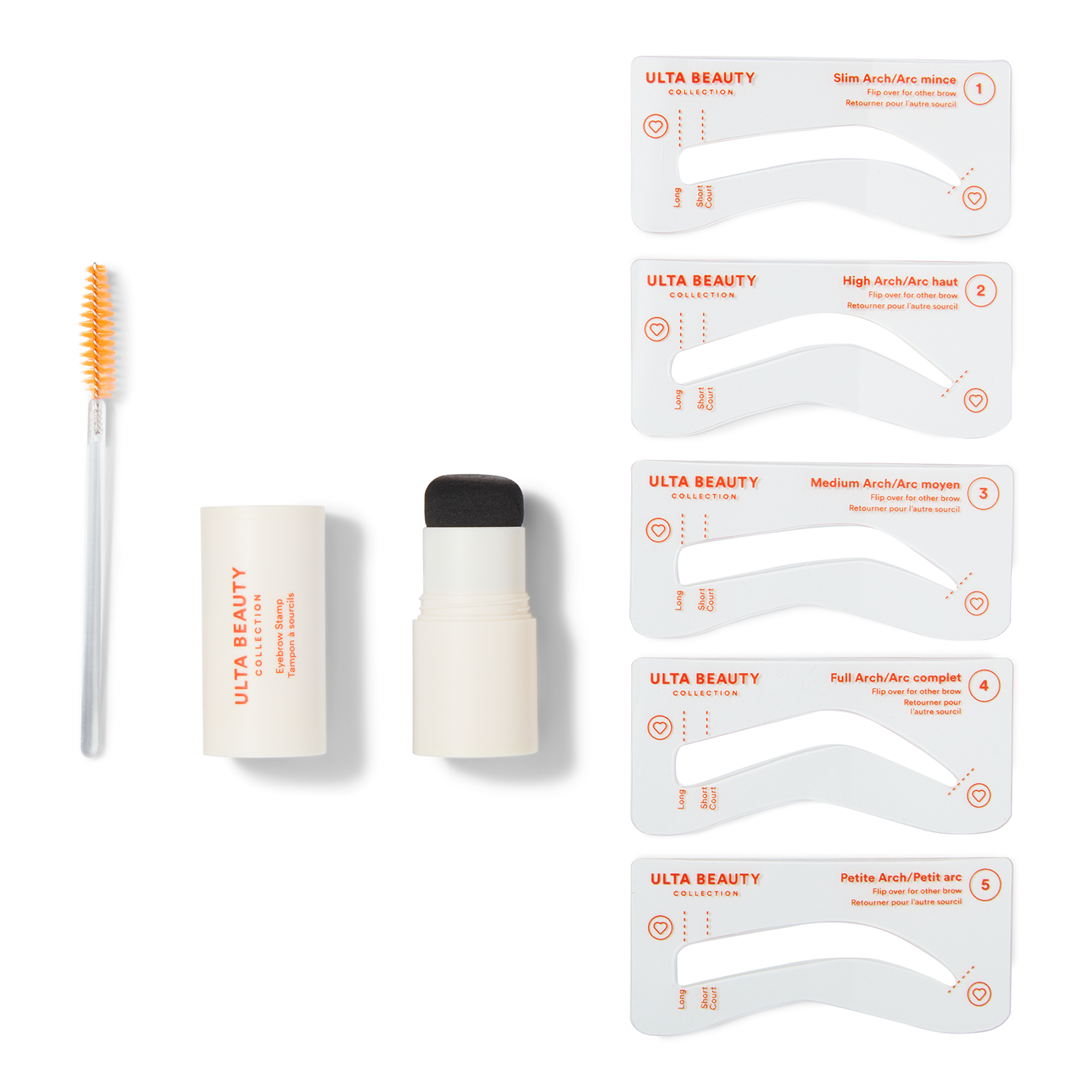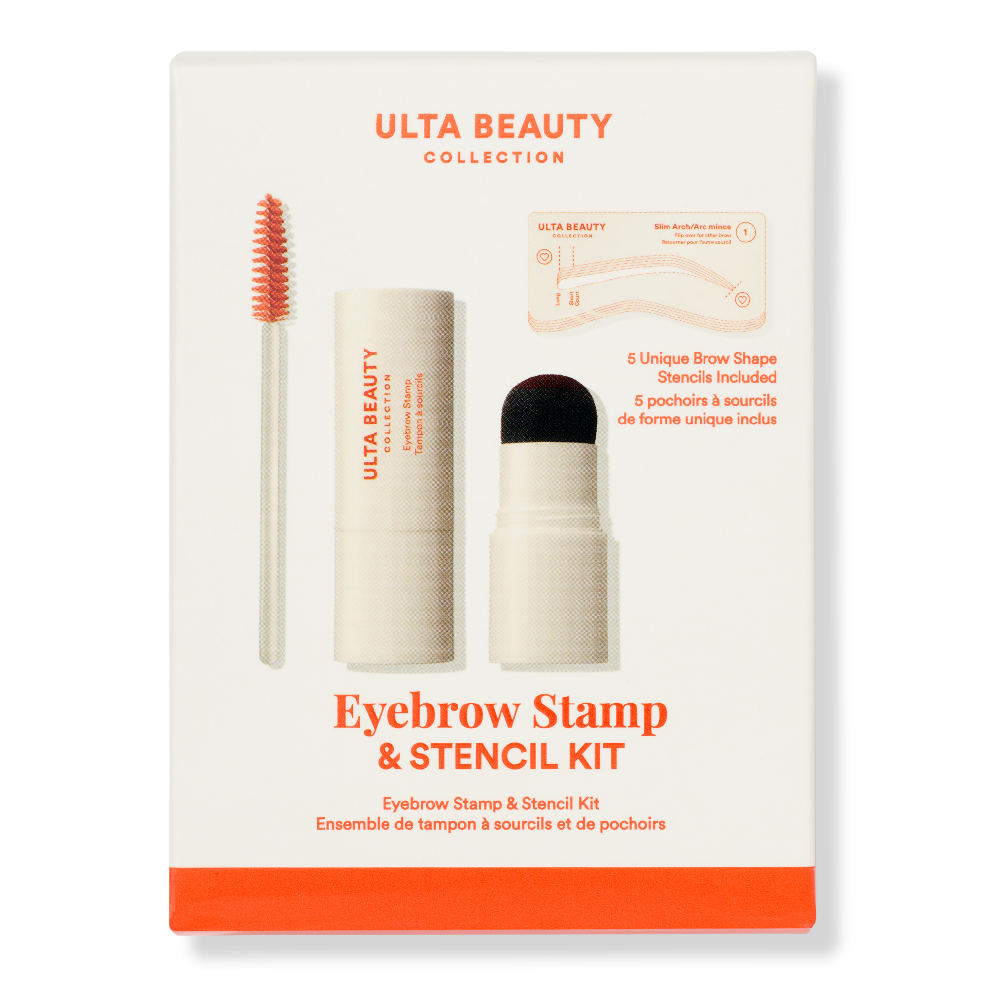 Be your own eyebrow makeup artist. Ulta Beauty Collection’s Eyebrow Stamp & Stencil Kit helps craft your go-to brow, on-the-go. Gel to powder pomade stamps tint between stencils for a classic brow, matte look.