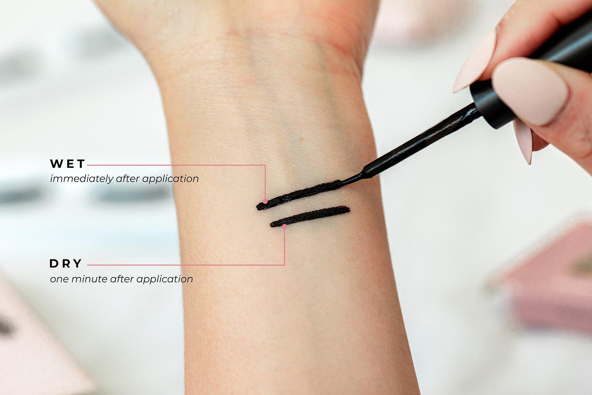 Coat the false eyelash band with lash glue and allow it to sit for 40+ seconds. Wait for the glue to become tacky before applying the false eyelash for better adhesion.
