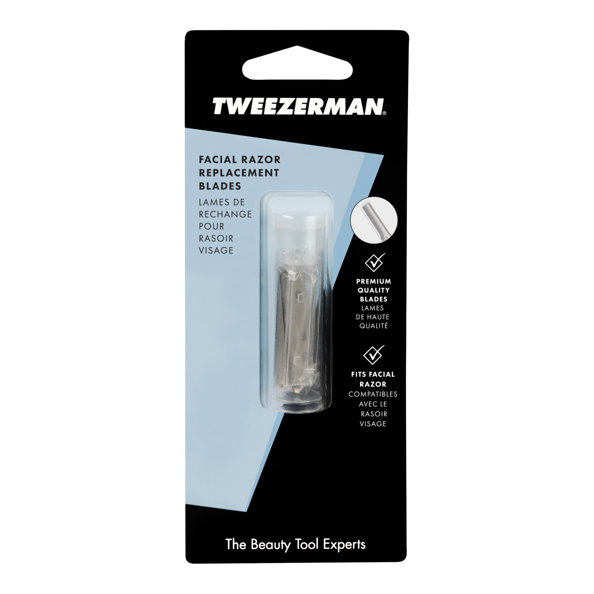 Premium in quality and superior in performance, Tweezerman's Facial Razor provides easy removal of peach fuzz while gently exfoliating skin. Designed for easy handling and optimal performance for self-care.
