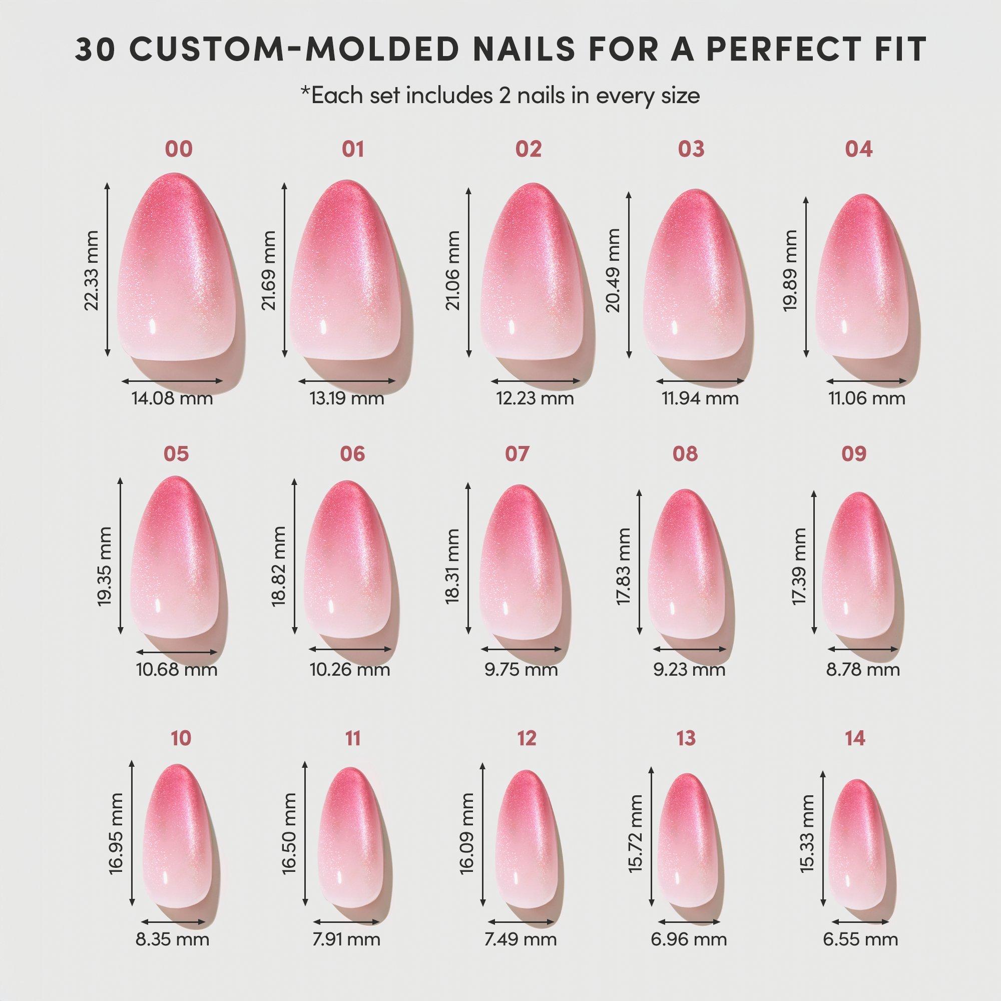 Embrace your soft side with Faded Feelings. A pink velvet ombré fade gives this short almond design a tender, trend-driven glow that is perfect for days when you’re feeling a little nostalgic and dreamy.