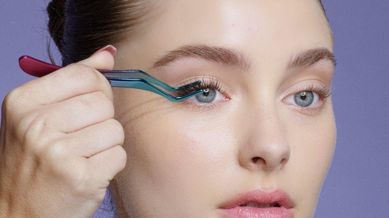 Step 2: Use the included APPLICATOR to pluck a WISP from the tray. As shown, pick up a WISP from the middle-outer end for optimal control. One by one, gently place the WISPS underneath the base of your natural lashes, slightly away from the waterline. Apply wisps starting from the outer corner of lash line, working inwards (or vice versa). Place WISPS right next to each other for a seamless look.