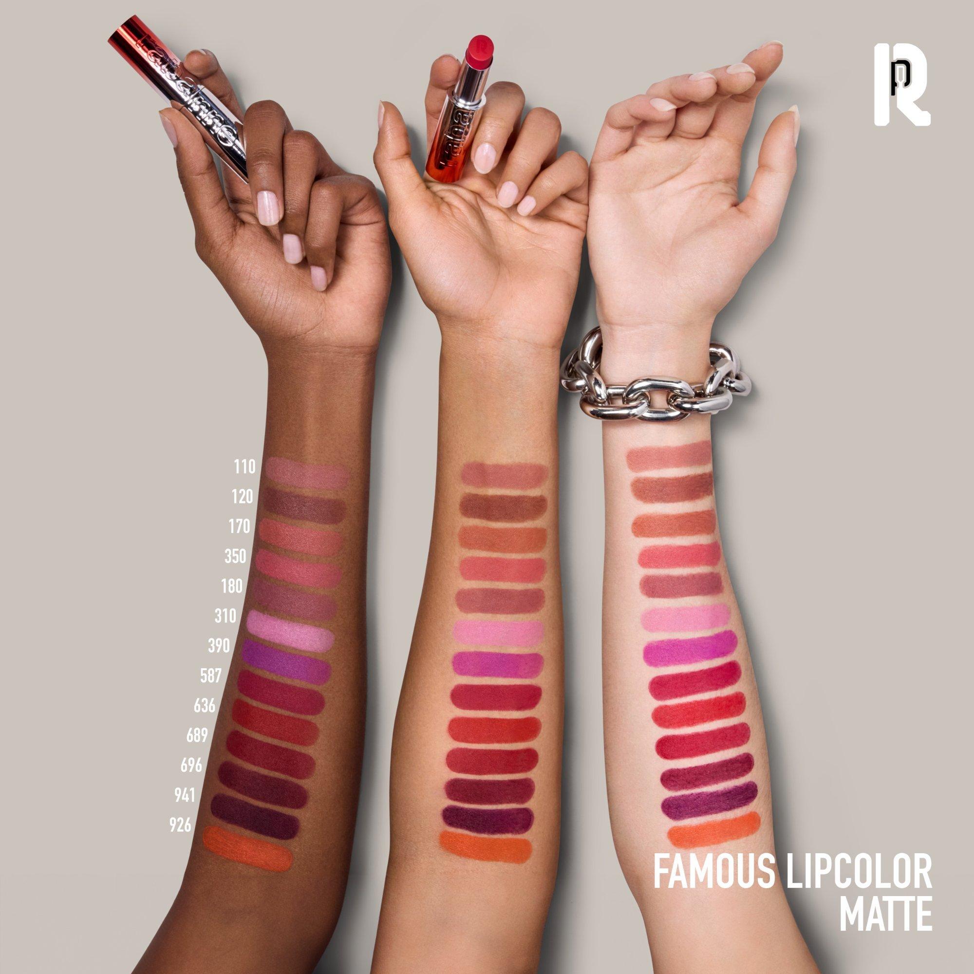 Experience maximum impact with Famous Lipcolor's long-lasting lipstick as you effortlessly glide it over your lips in just one stroke. Don't hesitate to get creative and mix the matte and metallic finishes for a bright or bold look that truly stands out!