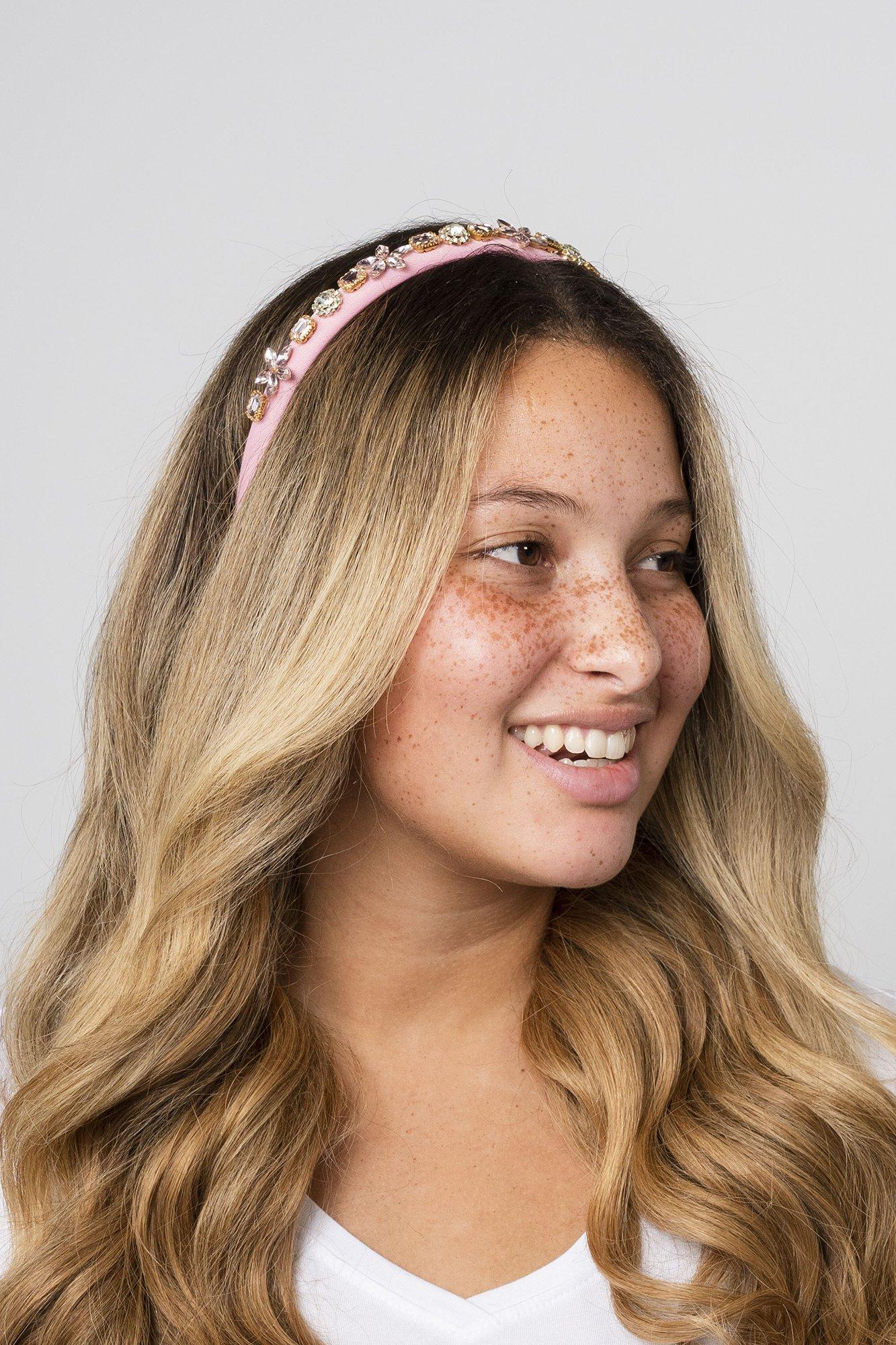 The Fancy & Fun Headband by Locks & Mane is a two-piece set, with one piece crafted from textured fabric and the other adorned with gems and rhinestones.