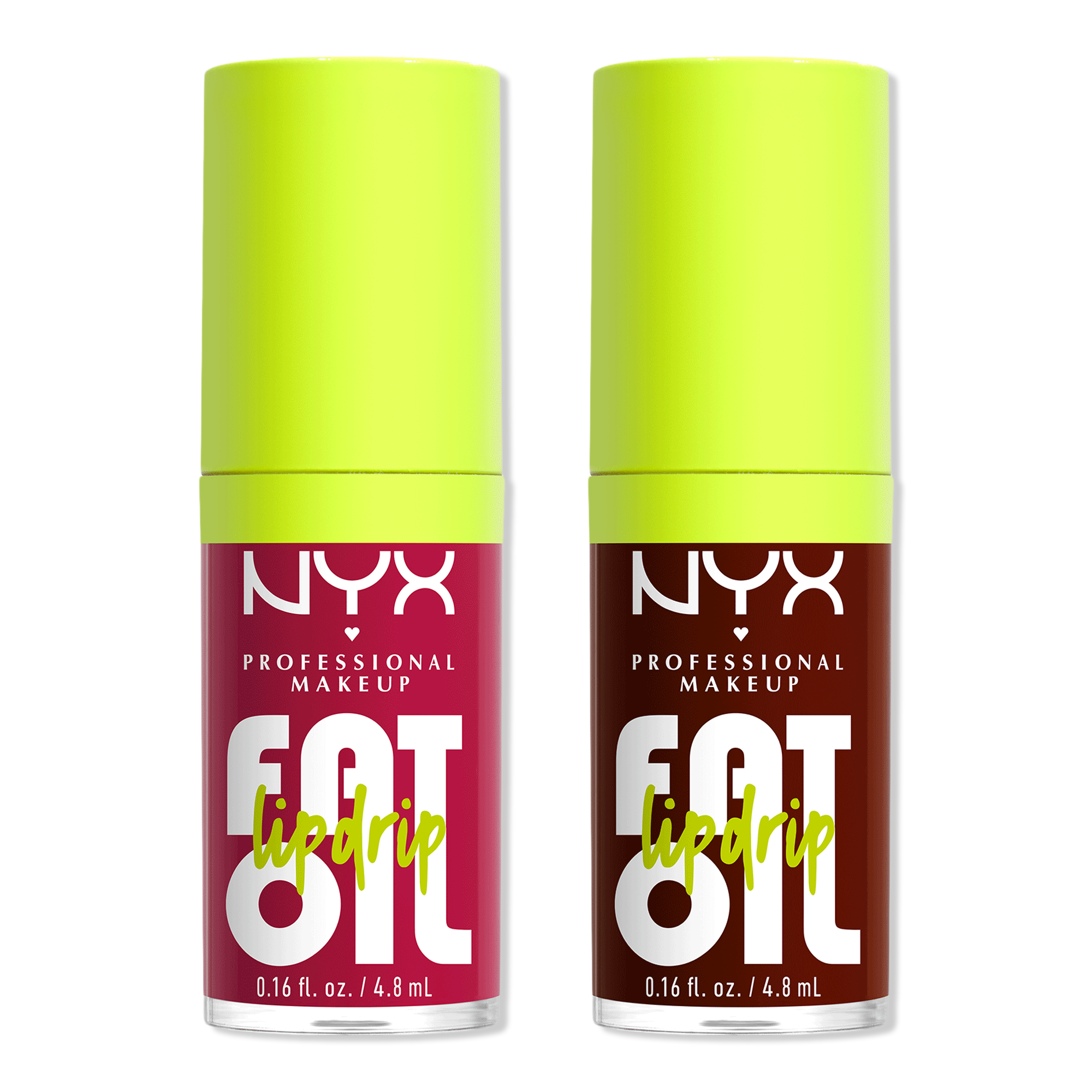 Get 12 hours of hydration with the vegan Fat Oil Lip Drip Lip Oil Duo Kit from NYX Professional Makeup - featuring 2 iconic shades, one for you and one for your bestie!