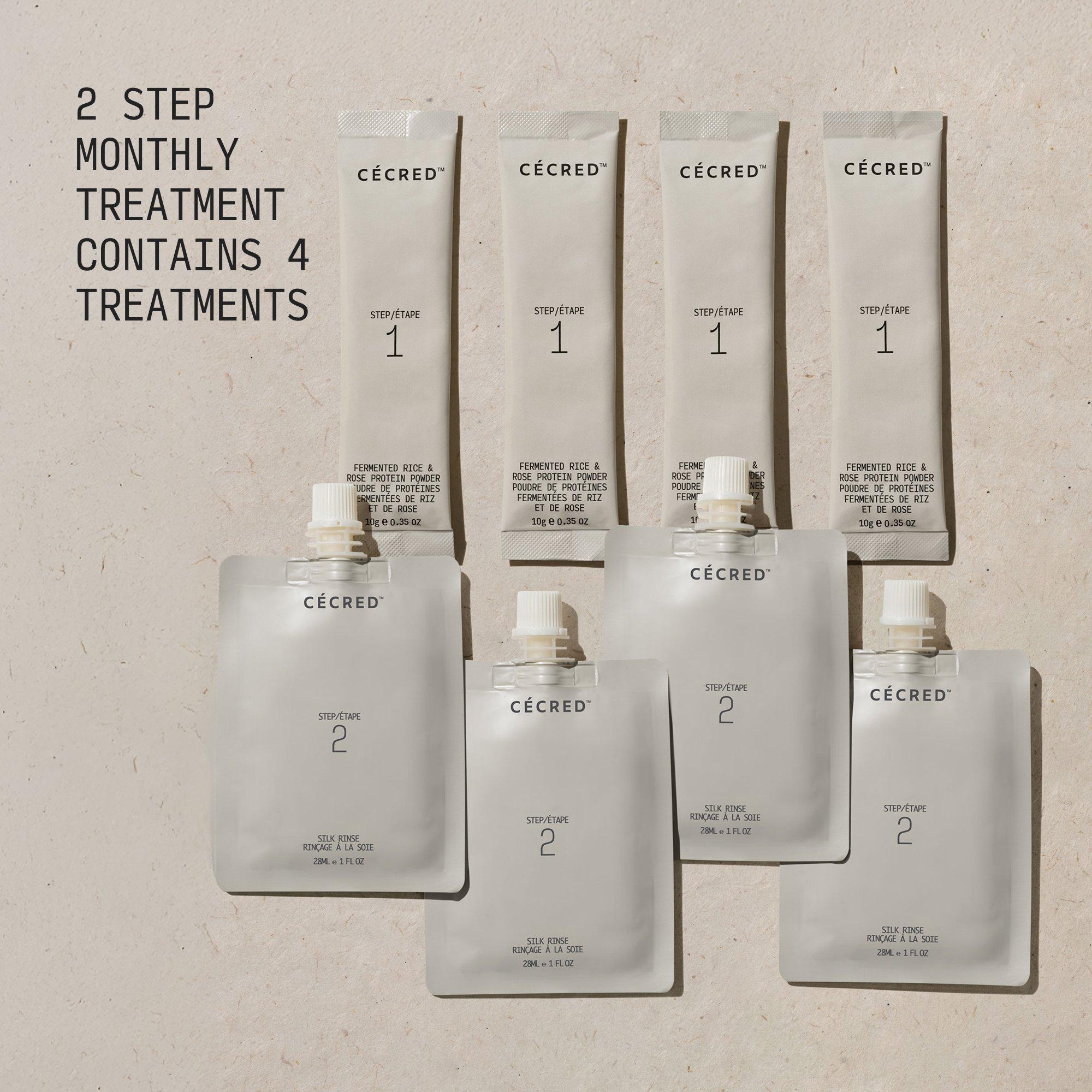 Cécred Fermented Rice \& Rose Protein Ritual contains 4 treatments. Use 1 treatment every 4-6 weeks before conditioning or whenever your hair needs a healthy boost.