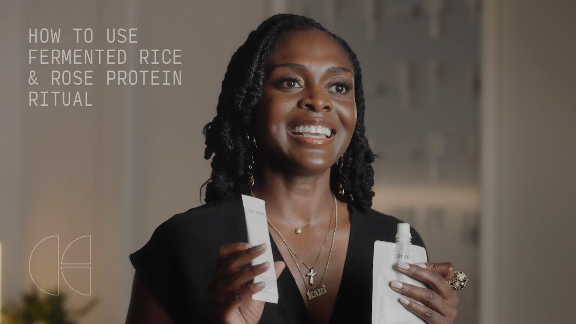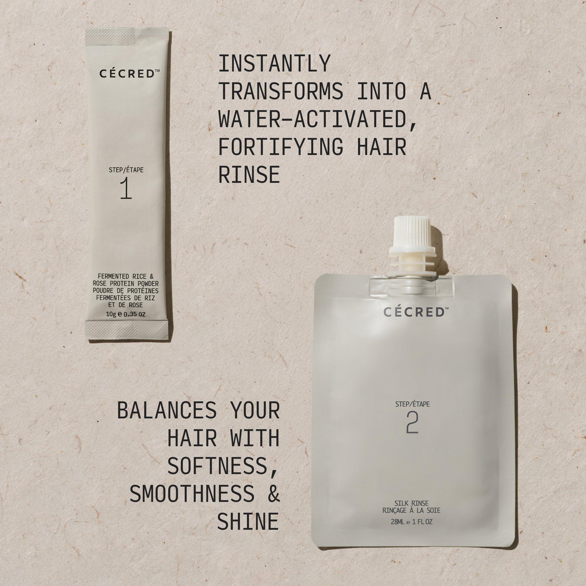 The power of fermented rice water, instantly. Cécred Fermented Rice & Rose Protein Ritual starts with the Fermented Rice & Rose Protein Powder, a water-activated treatment to fortify your hair. Finish the ritual with the conditioning Silk Rinse to balance softness and shine.