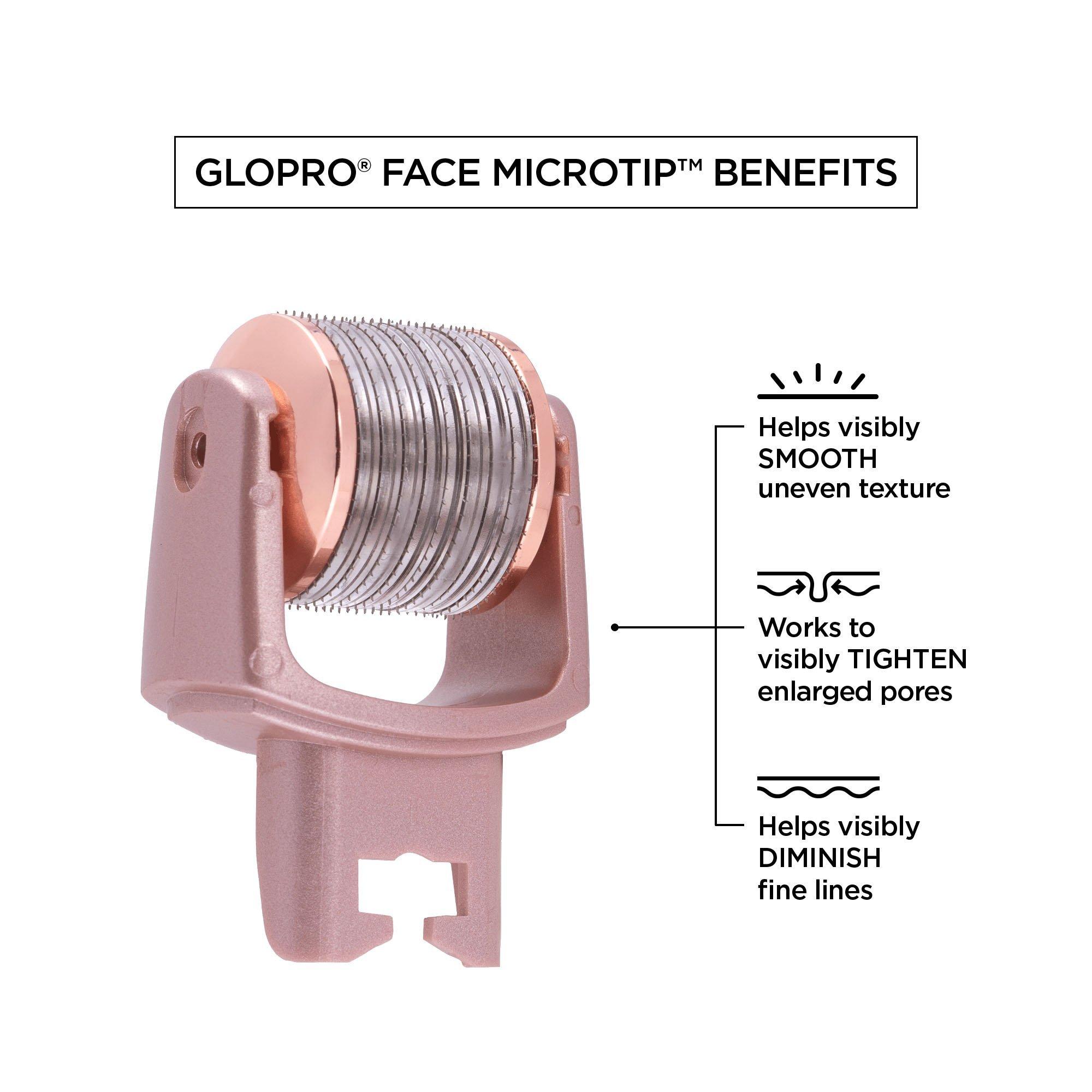 For PM use. Cleanse face and pat dry. Swipe Skin Prep Pads over face to prep and condition treatment areas. Gently glide GloPRO® FACE Attachment across forehead, nose-to-mouth lines, cheeks, neck and décolleté. Use the included spritzer bottle (fill with alcohol) to sanitize your MicroTipTM attachments after each use to ensure your tool stays clean and ready for your next treatment. Follow with your favorite serum or moisturizer for max results. Store your favorite attachment heads and skincare essentials in the signature Pack N' Glo organizer.