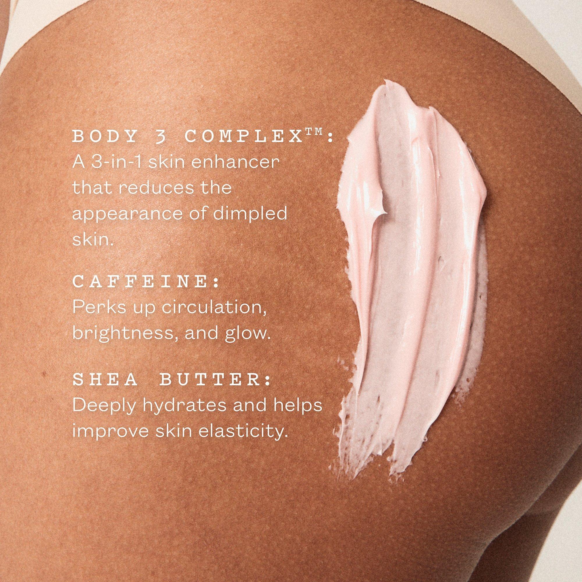 Frank Body's Firming Body Cream is firm on results. The active Body 3 ComplexTM technology has been tried, tested and trademarked to visibly firm skin, reduce the appearance of dimpled, uneven skin and stretch marks.