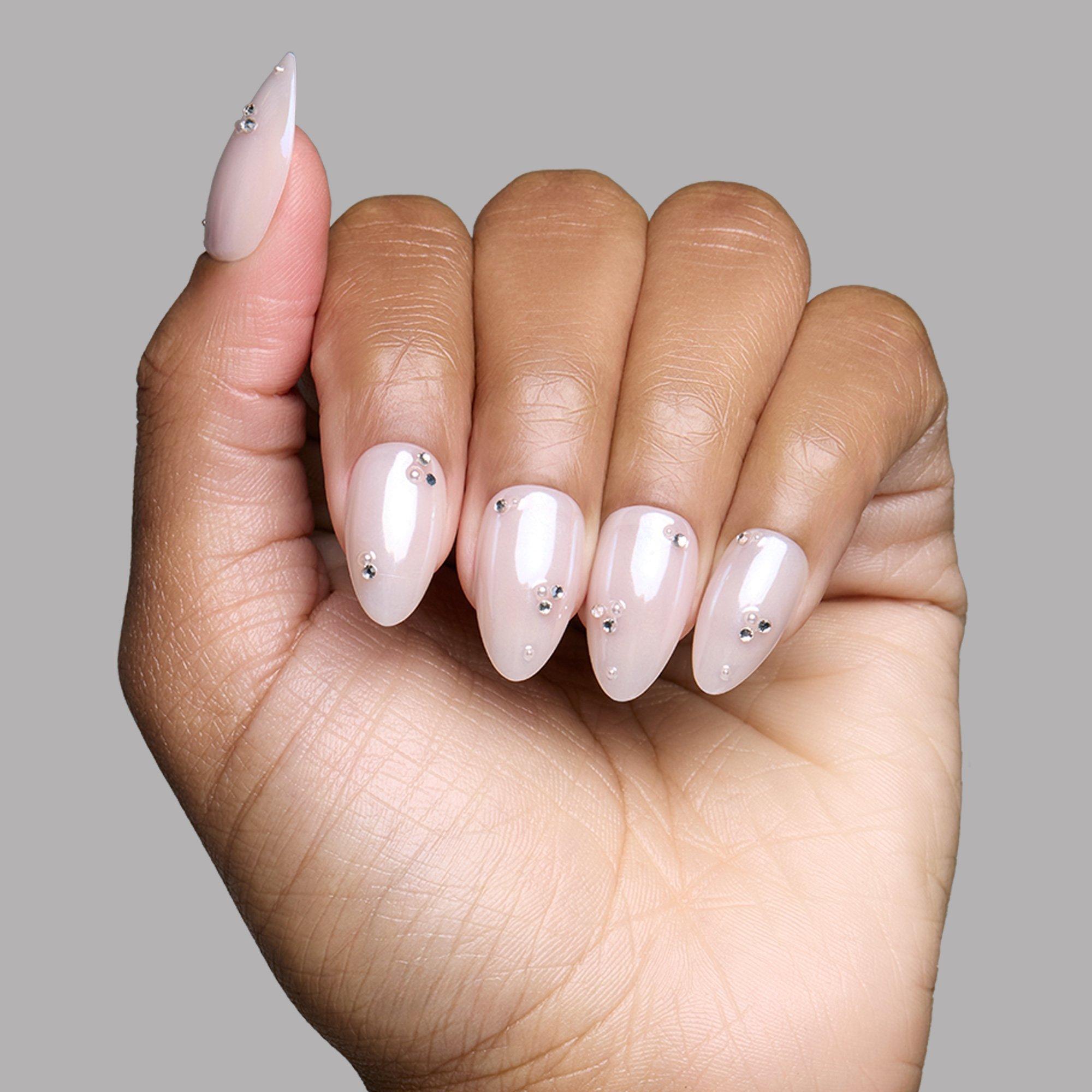 When it comes to Glamnetic's First Dance Press-On Nails set, there are lots of reasons to celebrate. Designed with a dreamy nude base and a soft, glazed finish, these short almond nails are decorated with delicate 3D pearls and gem accents. Effortlessly cool, and endlessly chic.