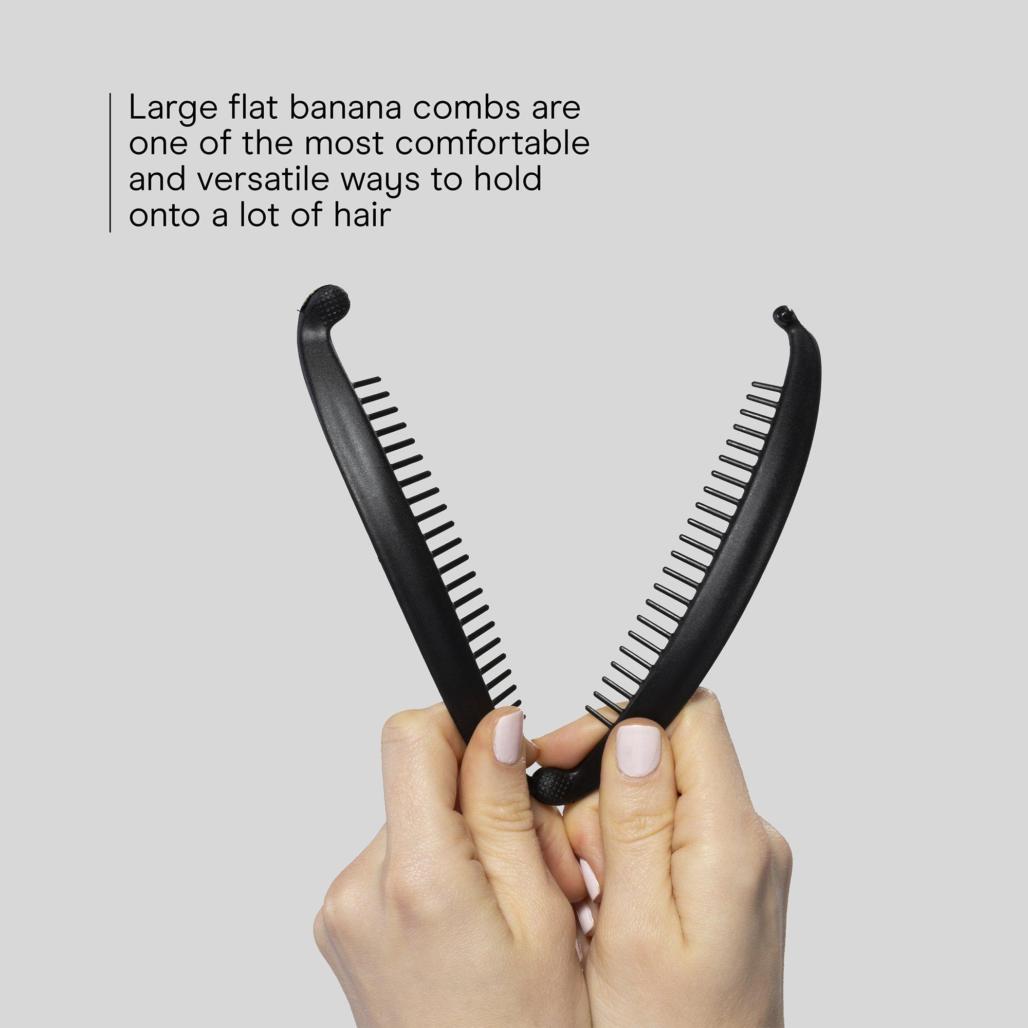 Conair large flat banana combs offer a comfortable, versatile way to hold and style longer hair. Ideal for thick hair, these combs help create loose ponytails or clipped-up styles that show off soft, cascading curls.