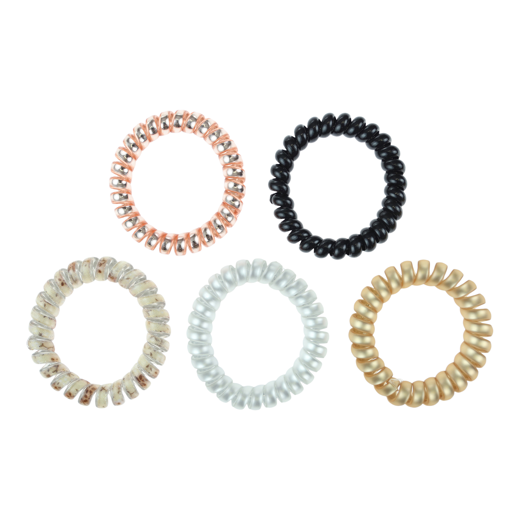 Embellish your looks with Capelli New York's exclusively-designed Floral Metallic Phone Cord Ponies. This 5 pack of chic ponytail holders will add a fun and playful touch to any look!