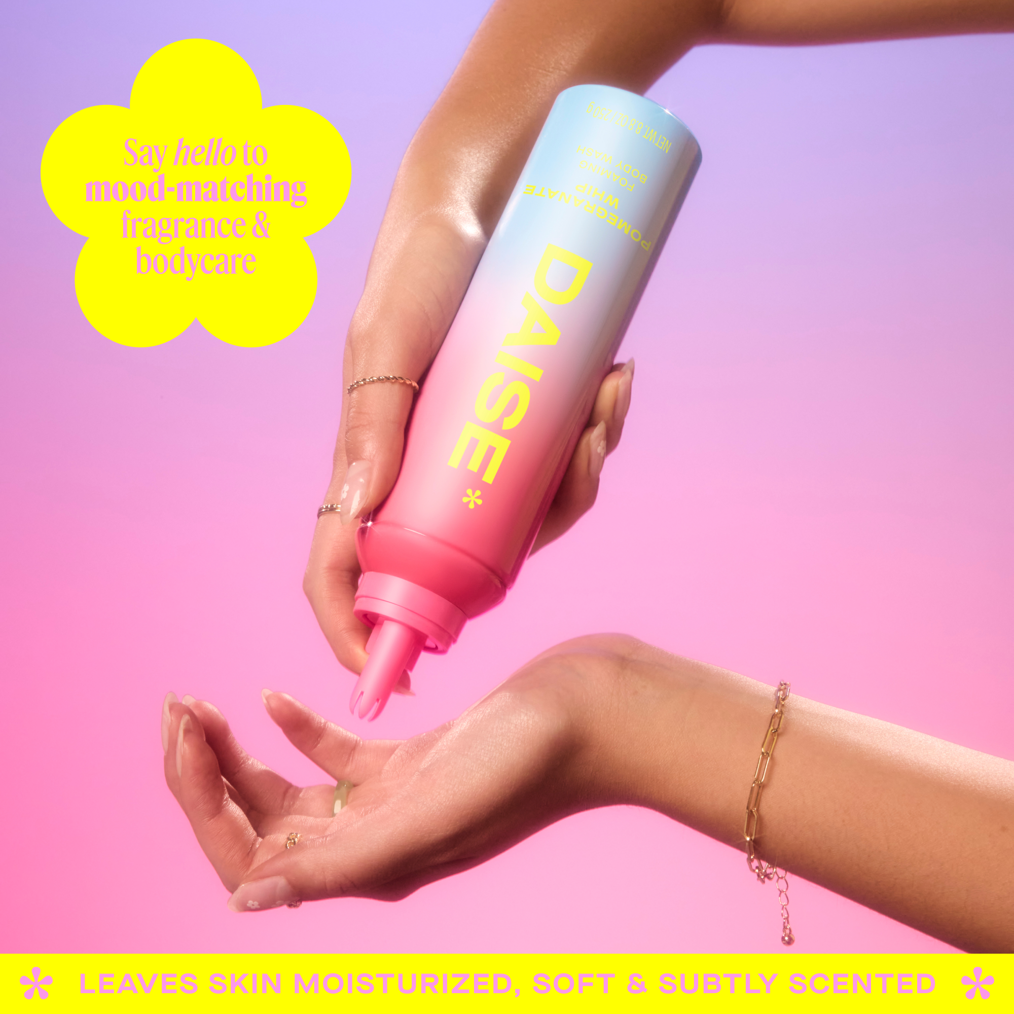 DAISE Foaming Body Wash is a super hydrating whipped formula that leaves skin feeling nourished, soft and subtly scented. Gentle enough for everyday use, it lathers to delicately clean and refresh skin, while the scent is guaranteed to bring joy to your day.