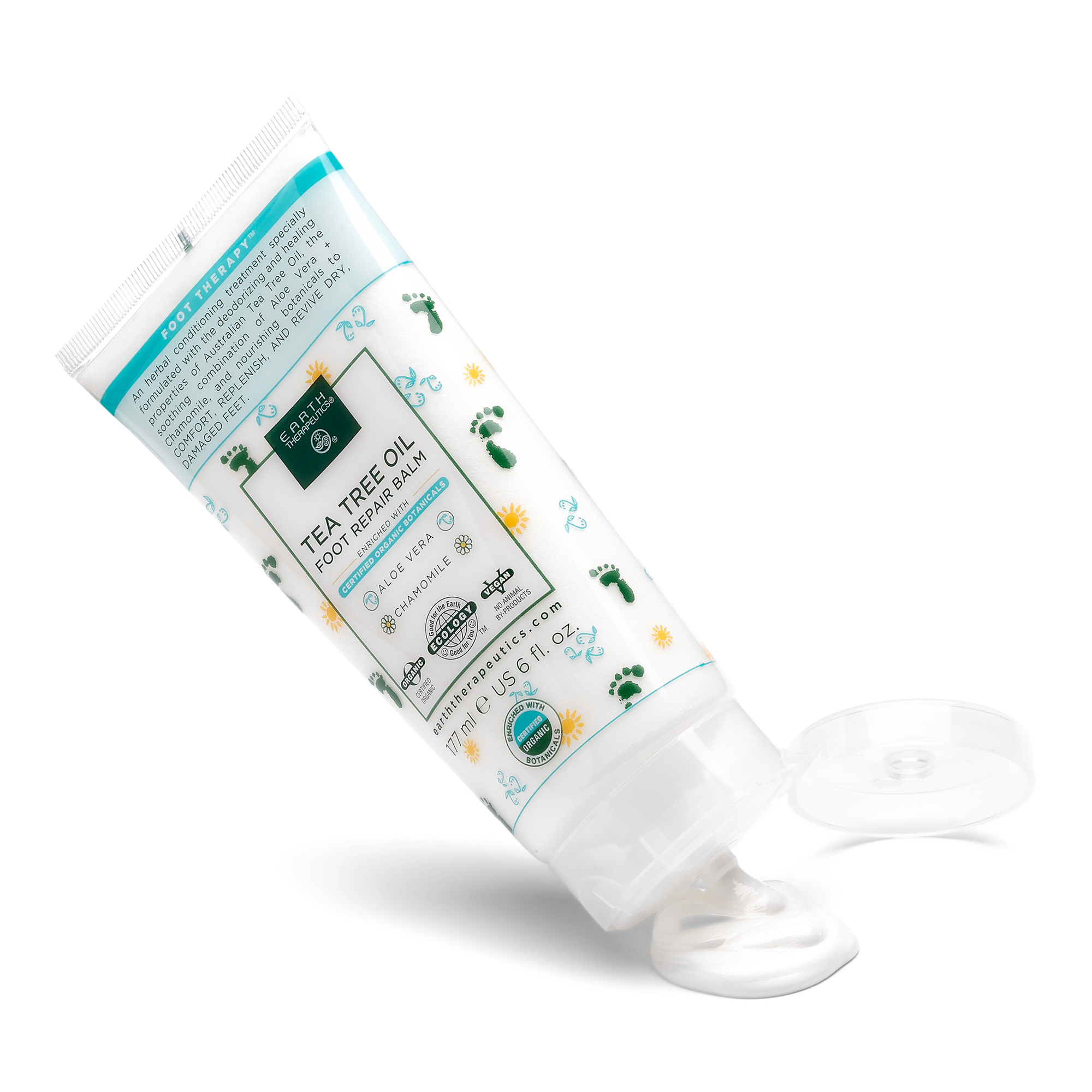 Massage liberally all over the feet. This revitalizing botanical treatment softens and conditions dry skin and calluses while it stimulates blood circulation to soothe tired, worn-out feet. Tea Tree Oil deodorizes while it heals. Also works on hands, knees, elbows, and other dry skin areas. Apply every day for softer, healthier skin.
