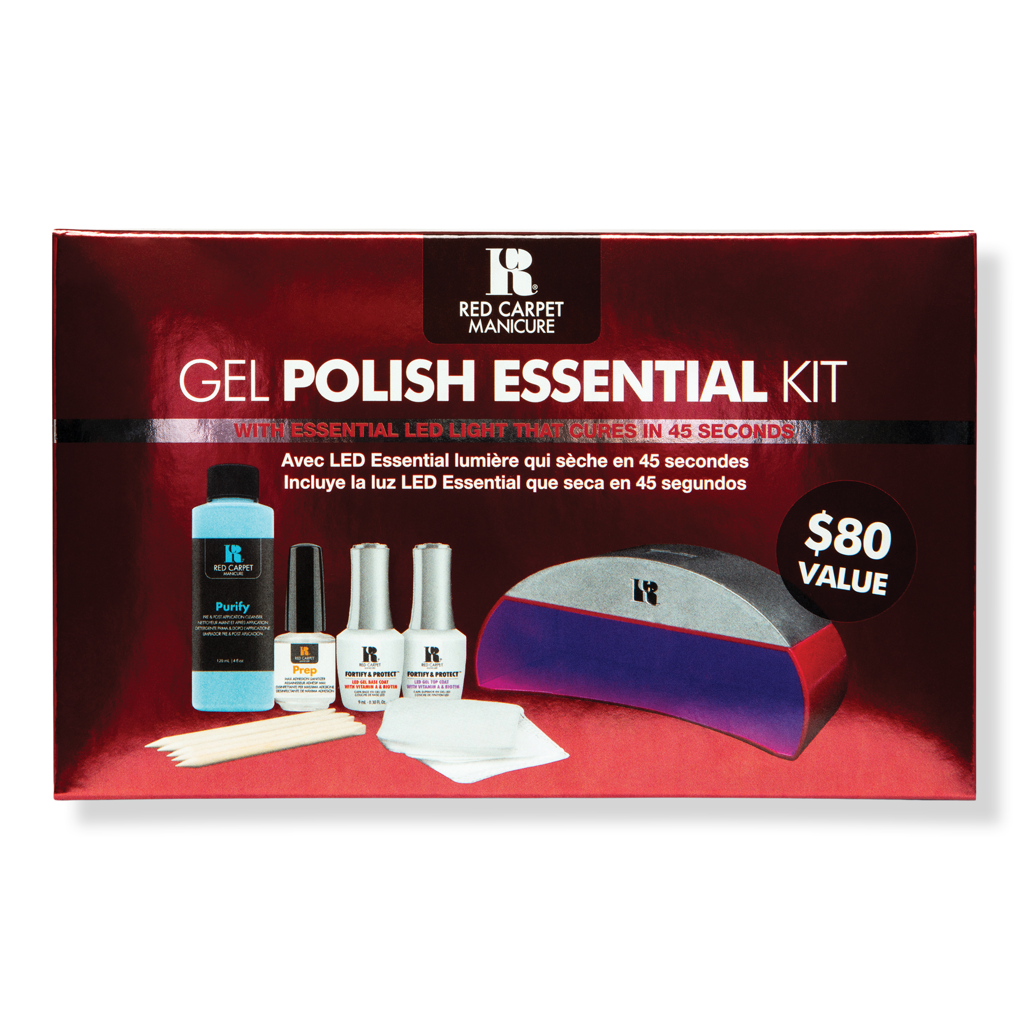Get all the essentials needed for an at-home gel polish manicure with the Red Carpet Manicure Fortify & Protect Essential Starter Kit. Red Carpet’s award-winning patented formula will give you salon quality results with chip-free wear and high shine for up to 21 days.