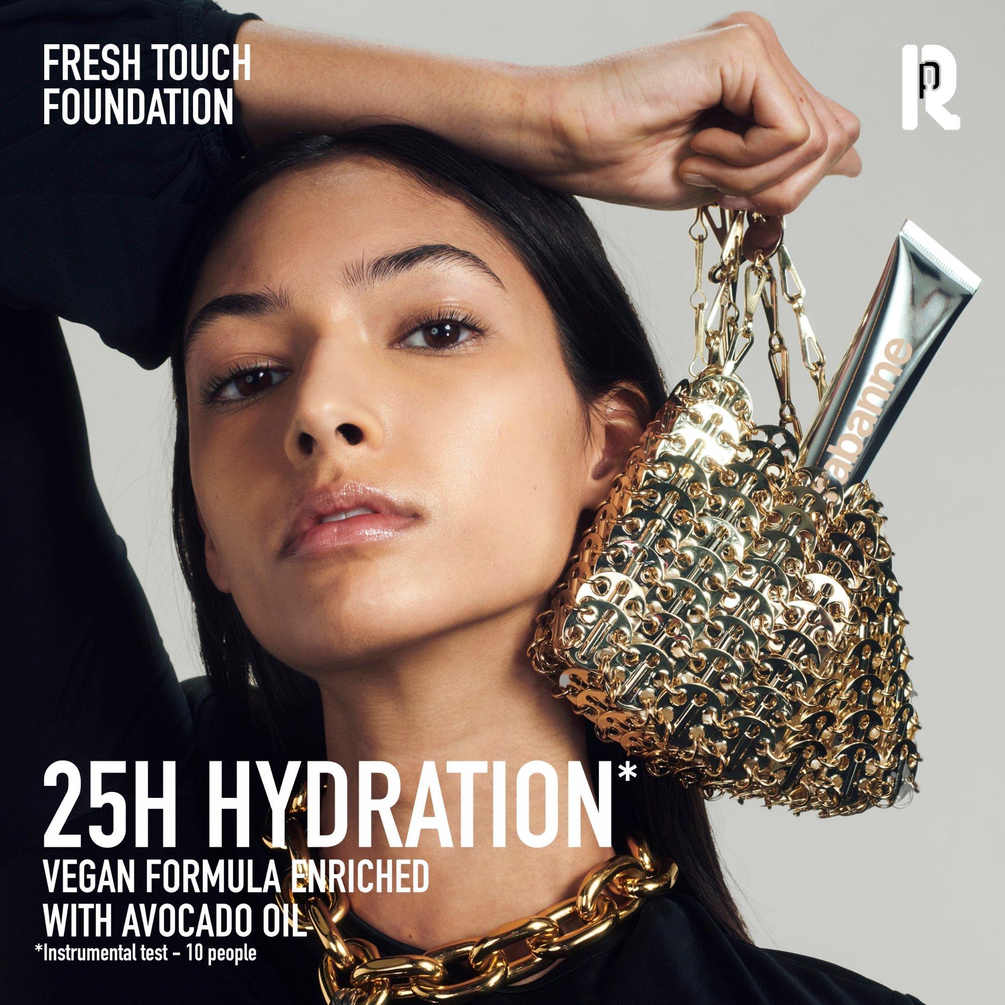 Say hello to Fresh Touch Foundation by Rabanne, the flawless, skincare-infused water-based foundation. For up to 24h of radiance and all-day wear, this lightweight glow-boosting formula, blends seamlessly for a second-skin comfort and instant blurring effect. Available in 30 shades.