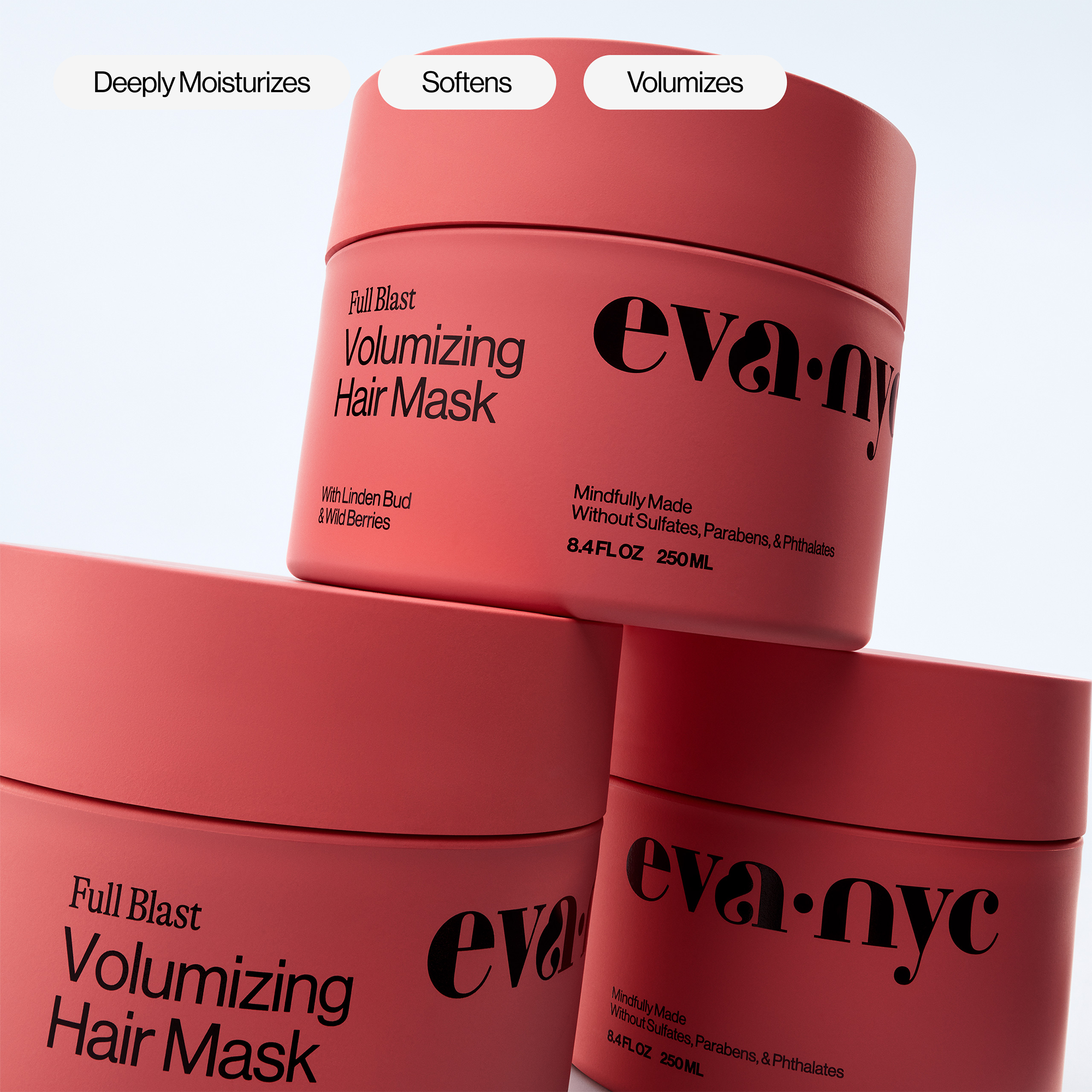 Eva NYC's Full Blast Volumizing Hair Mask is a lightweight, deep conditioning mask that pumps up the volume! It's ultra-moisturizing formula delivers 2X the volume for 48 hours, leaving even the finest of hair thicker-looking, detangled and soft as a cloud. Ready for lift off?