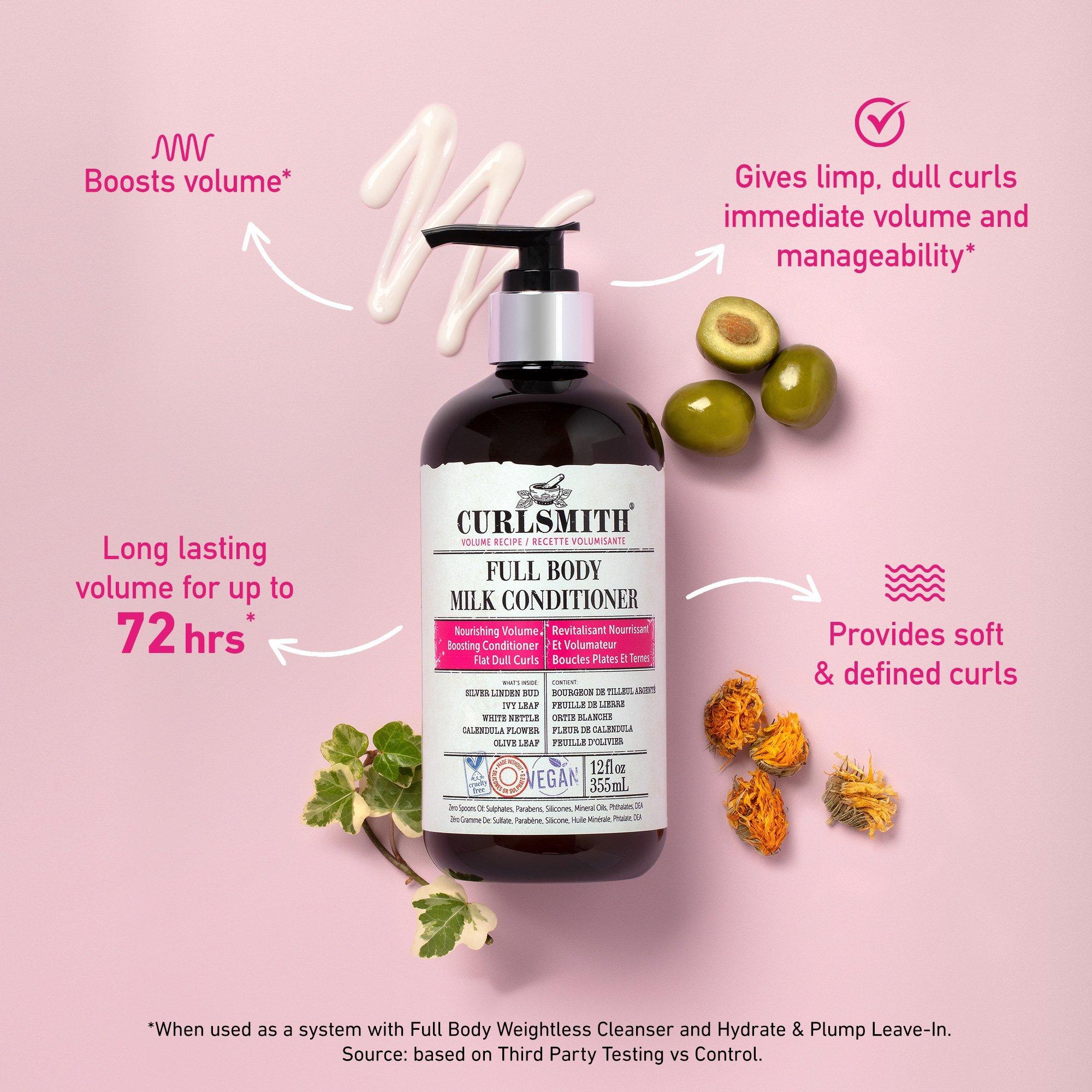 Curlsmith Full Body Milk Conditioner is a lightweight conditioner that will boost curls for a voluminous look, leaving them soft, full and tangle free.