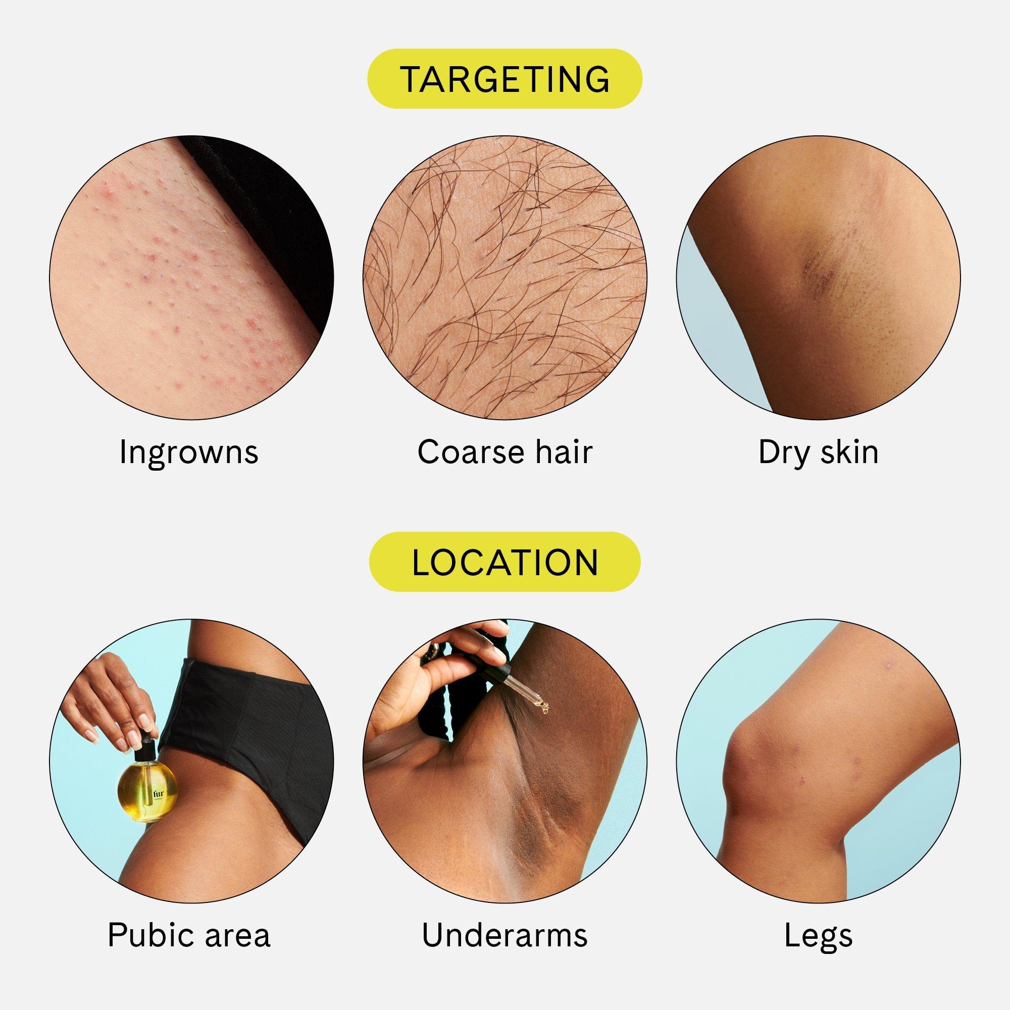 Safe for your most sensitive areas and won't stain your silk. Specifically designed for pubic hair and skin, Fur Oil has a signature blend of lightweight oils that gently softens hair and clears pores for fewer ingrowns and healthier skin.