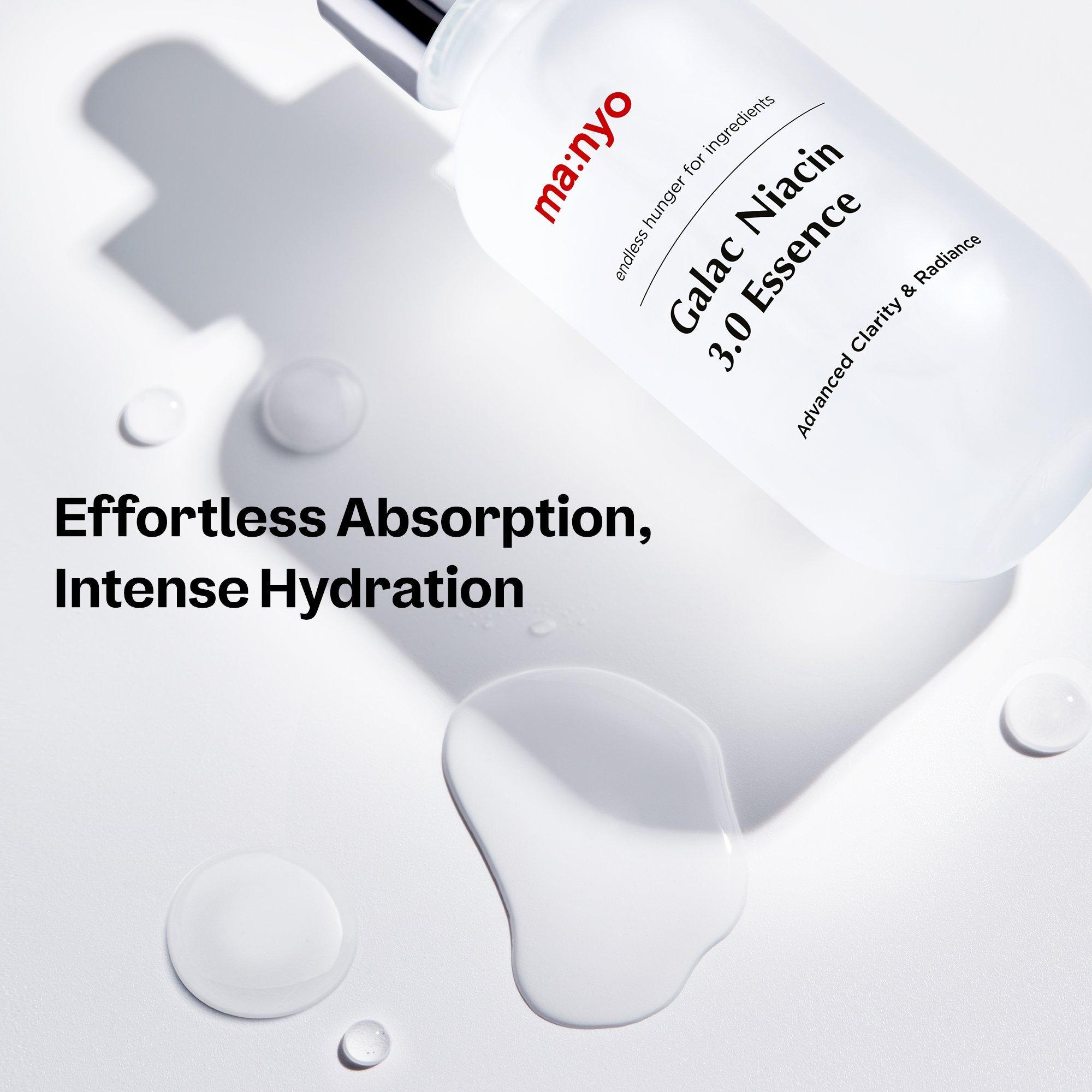ma:nyo Galac Niacin 3.0 Essence is an all-in-one brightening essence with 93.7% Galactomyces Active and Niacinamide. Helps refine texture, minimize pores, and fade dark spots and blemishes for radiant, smoother skin.