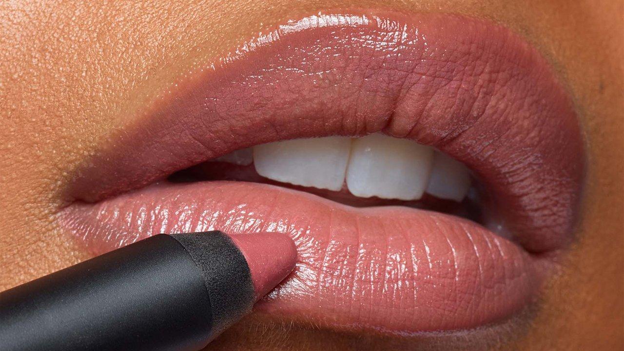 Outline, and then fill in the full lip. Smack those lips . Lightly swipe color on apples of cheeks and blend outwards with your fingers.